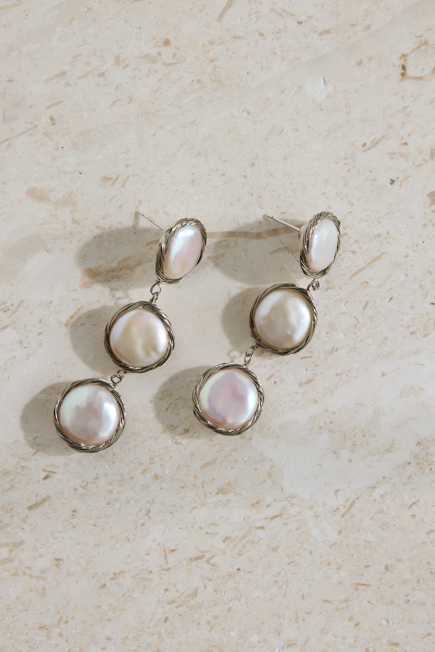 18K Gold Plated Precious Pearls Earrings Silver