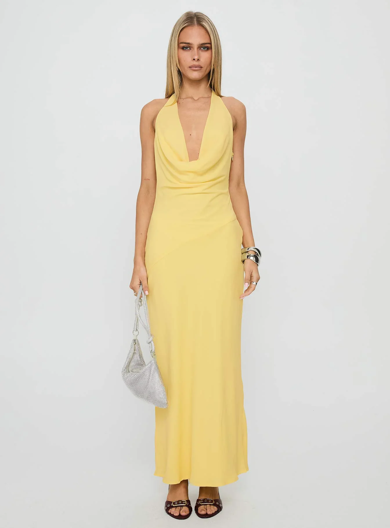 Ocean Boulevard Plunge Maxi Dress Lemon