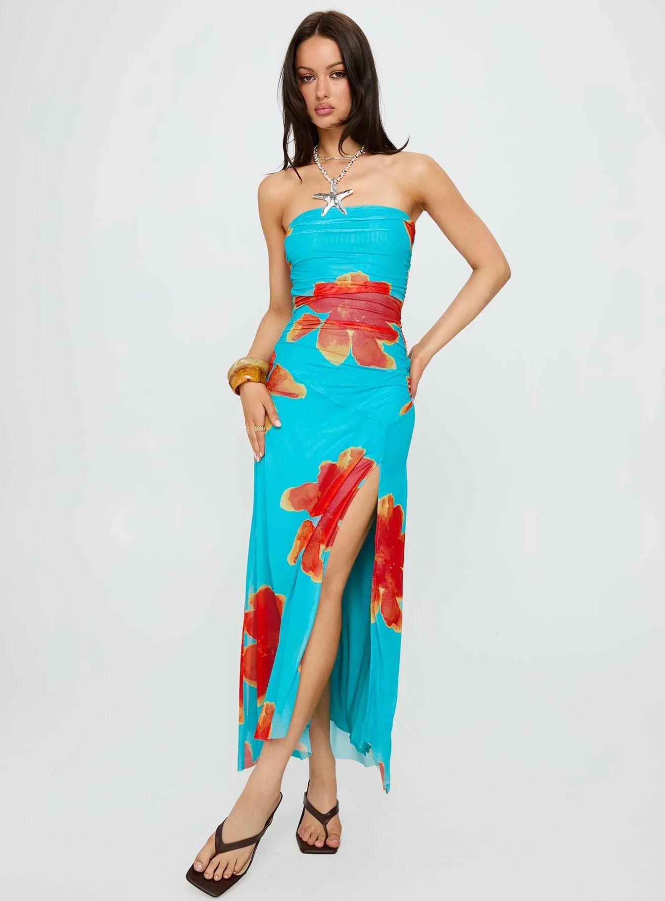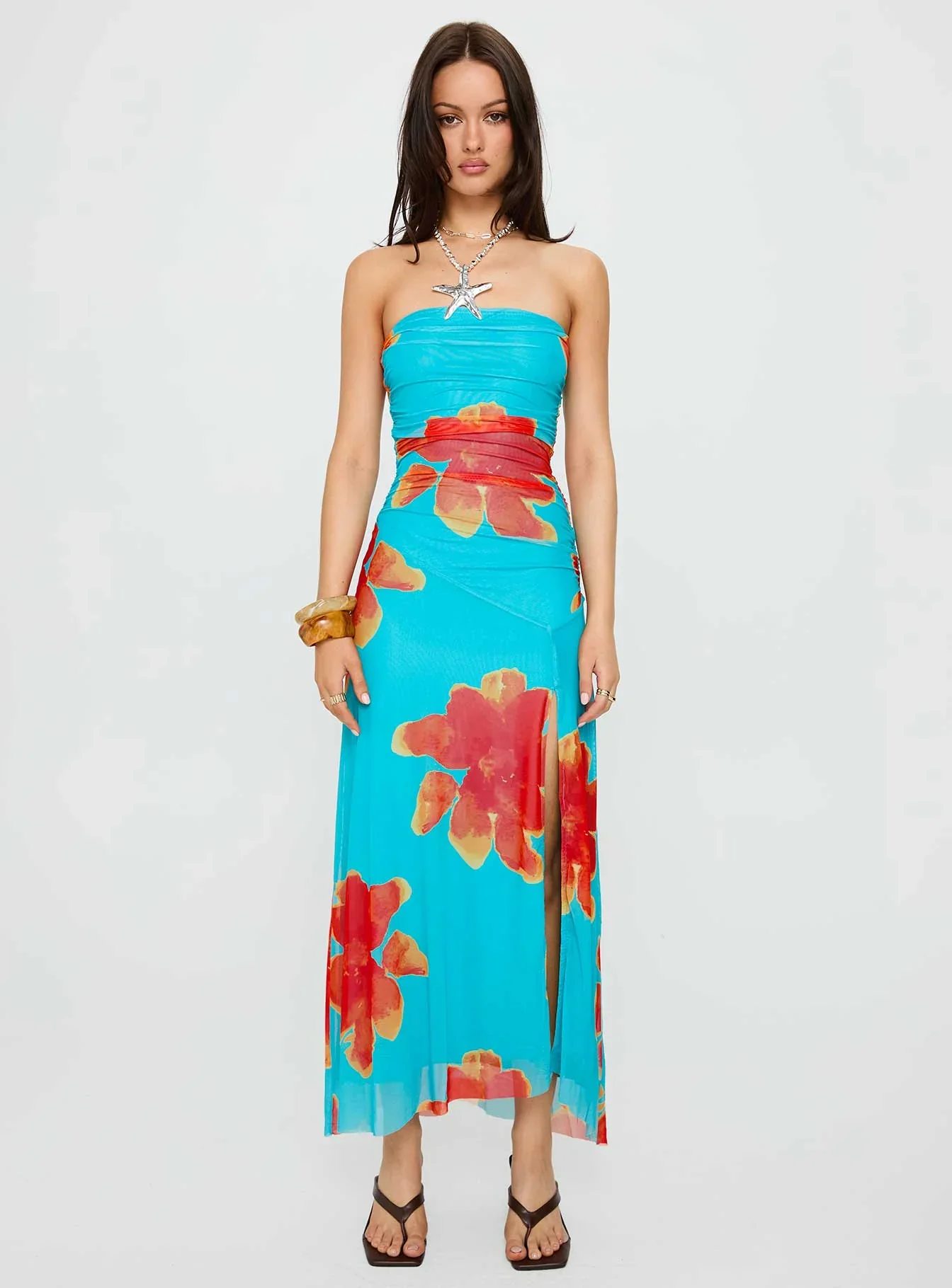 Katara Strapless Maxi Dress Blue / Orange Floral