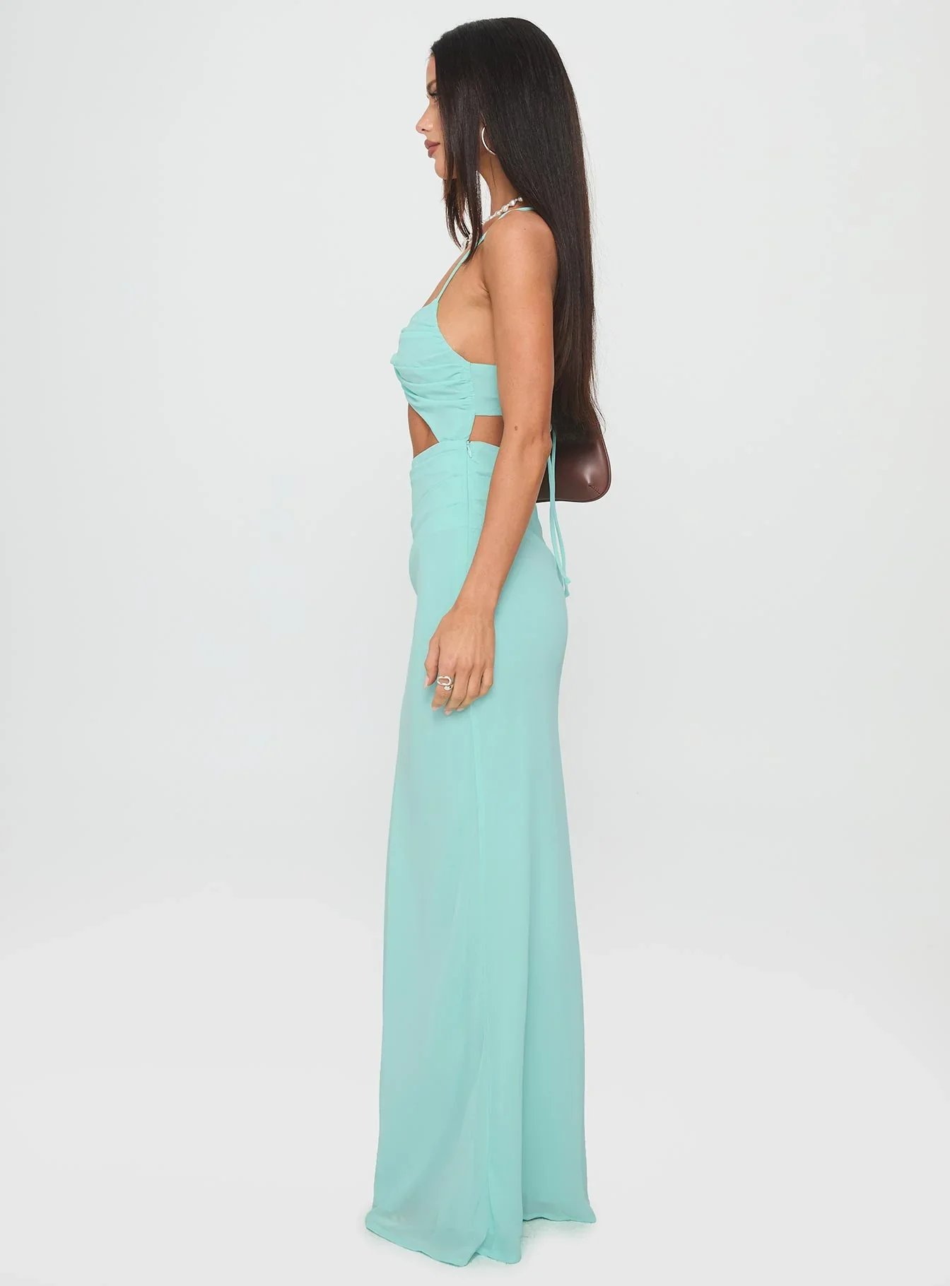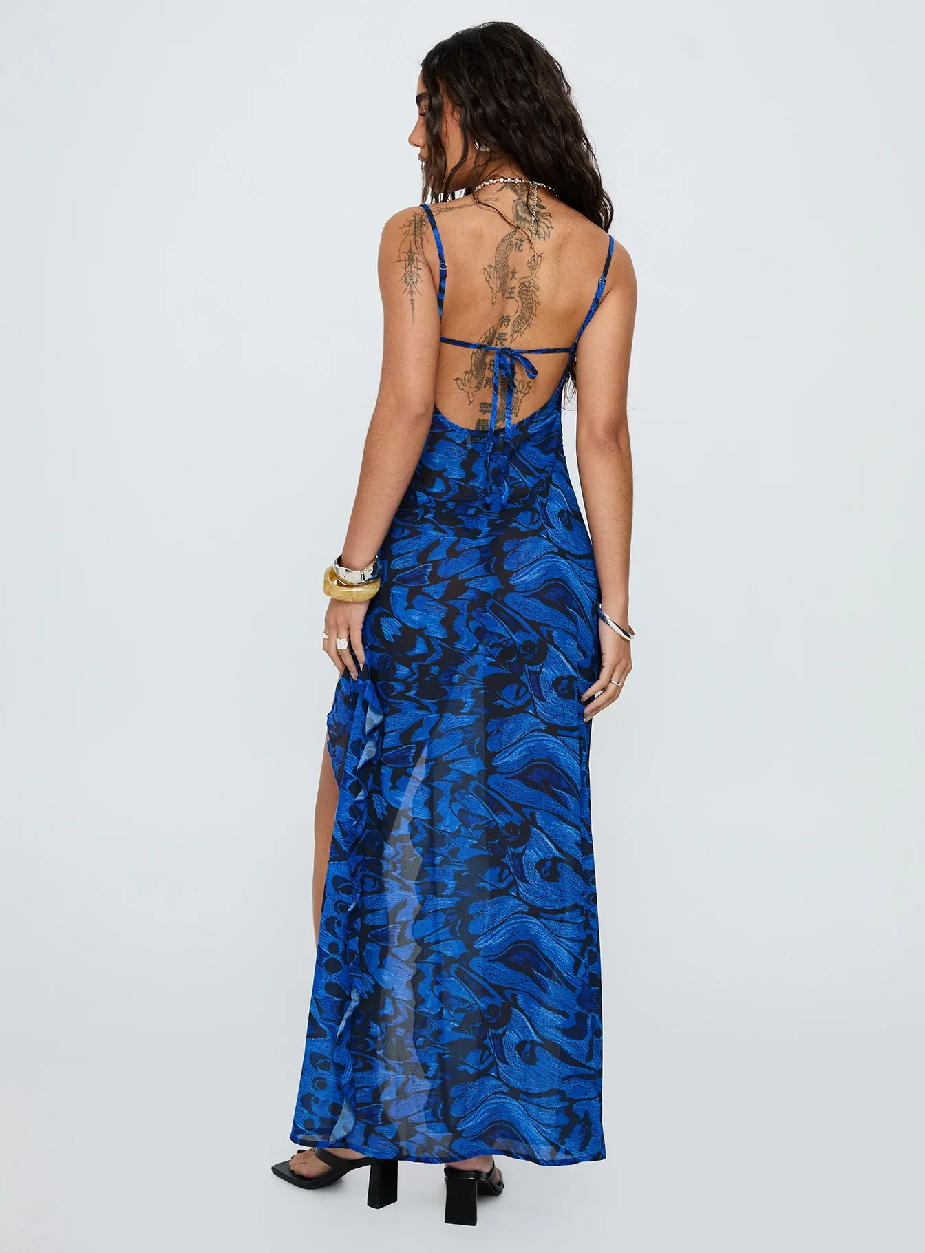 What A Thrill Split Detail Maxi Dress Blue Multi