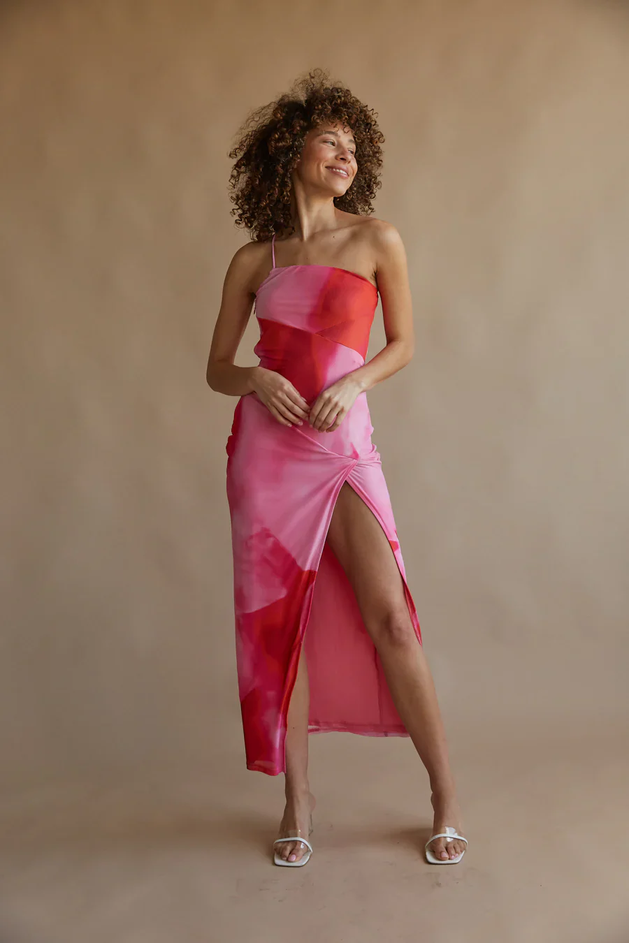 Champagne Chat One Shoulder Maxi Dress Yellow