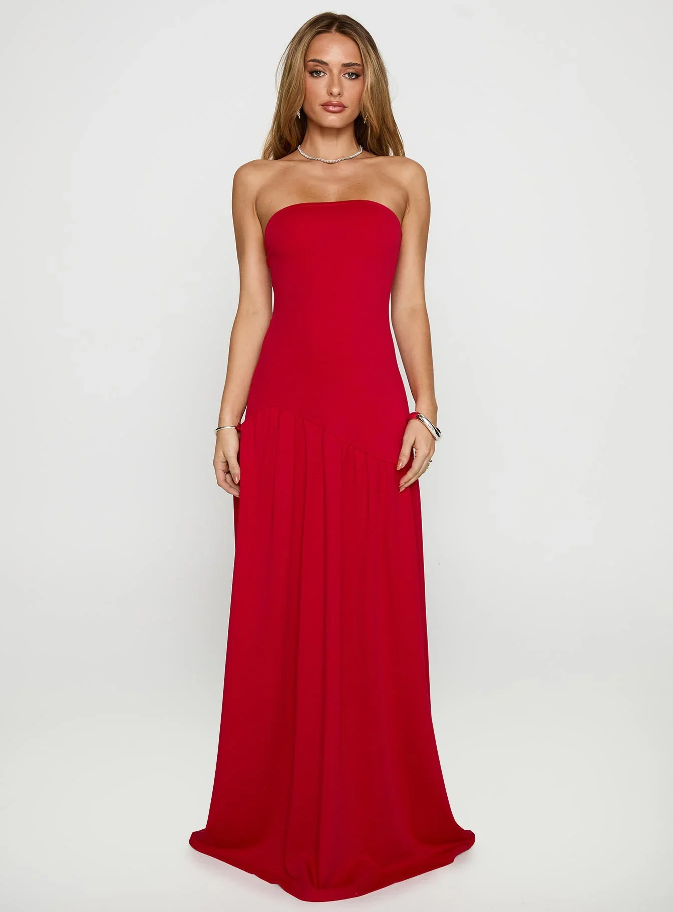 Move Me Strapless Maxi Dress Red
