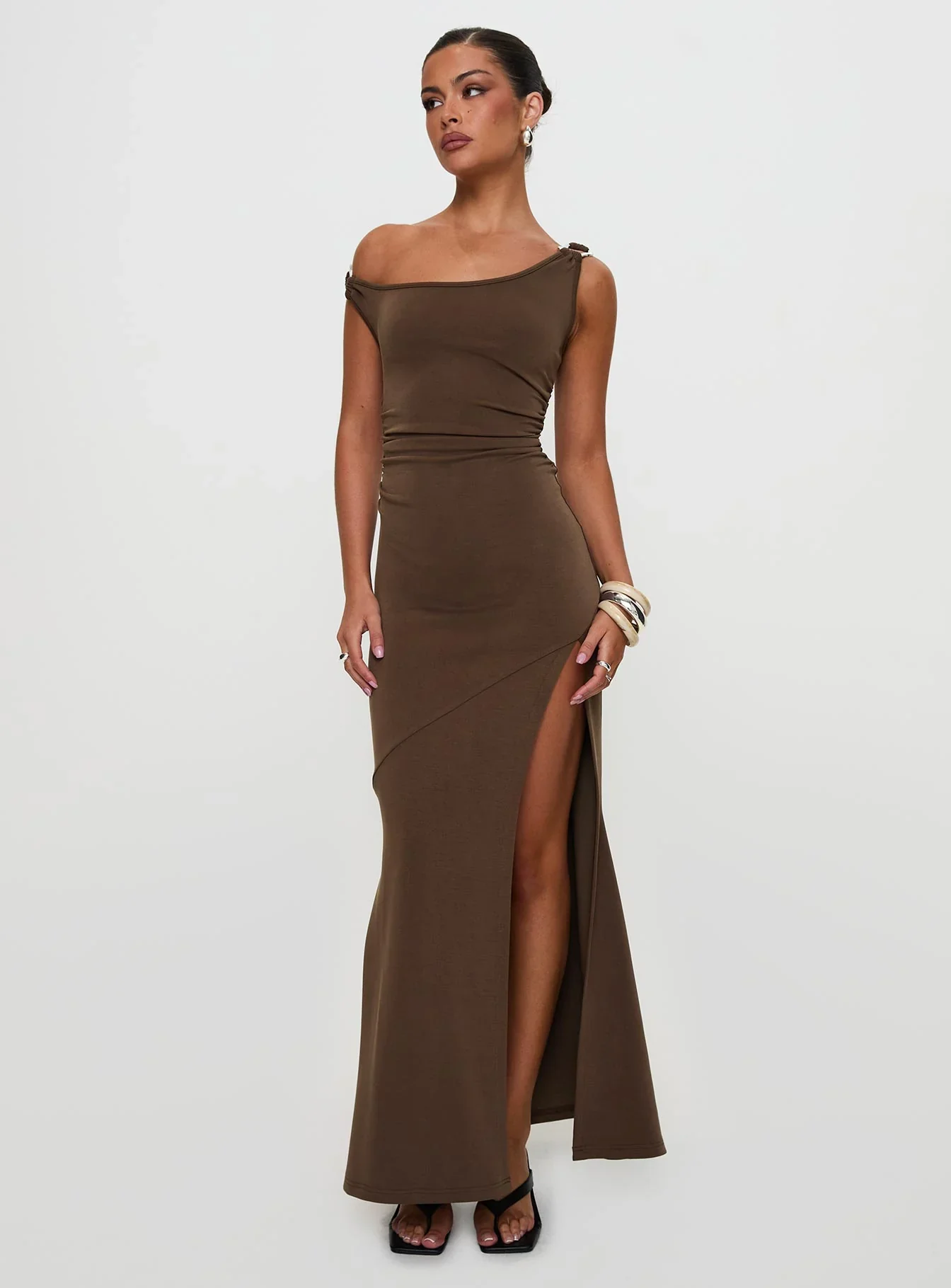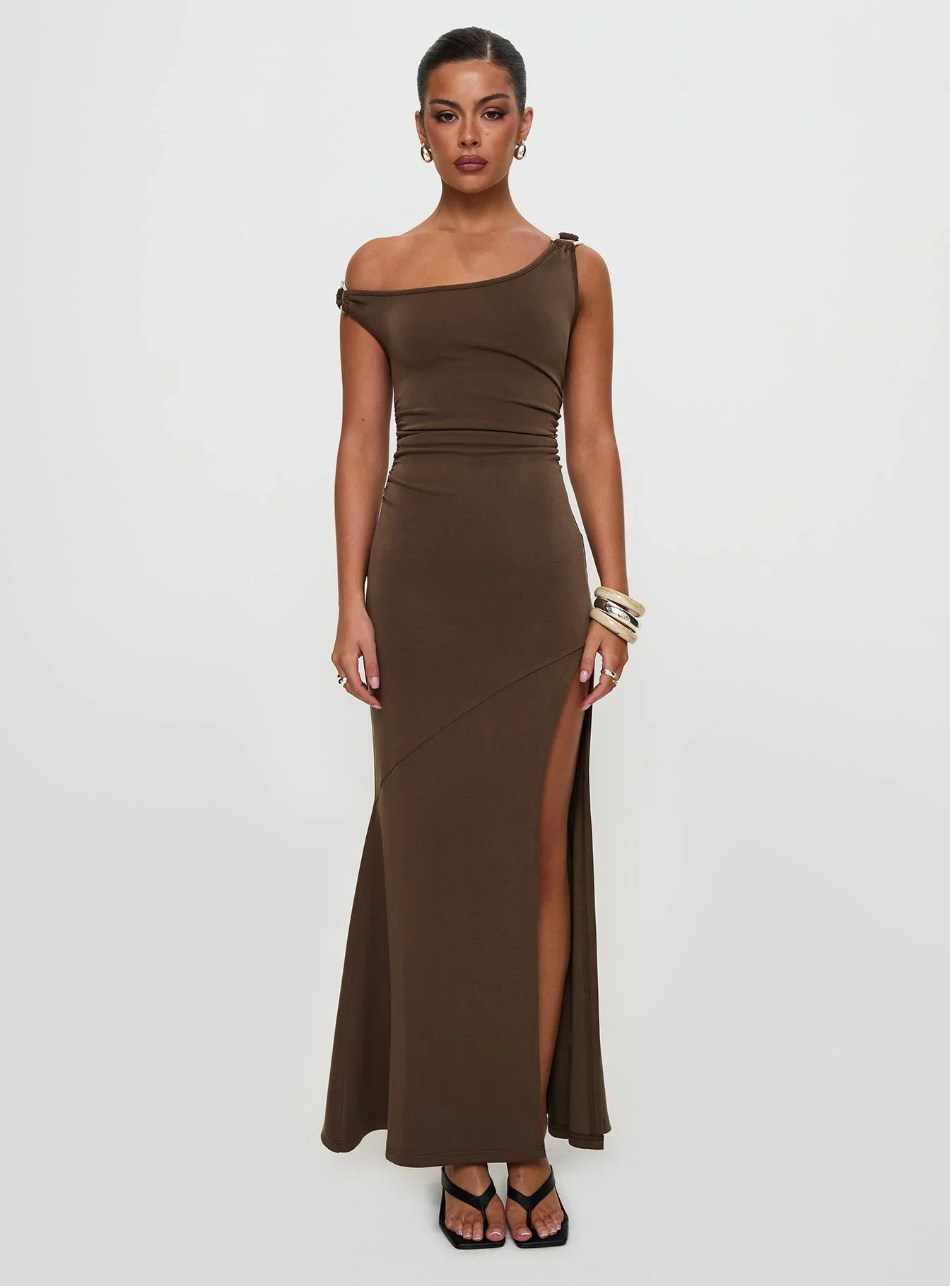 Rios One Shoulder Maxi Dress Brown
