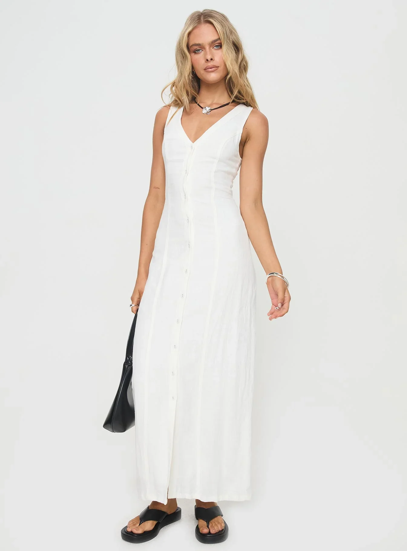 Summer Season Linen Blend Maxi Dress White