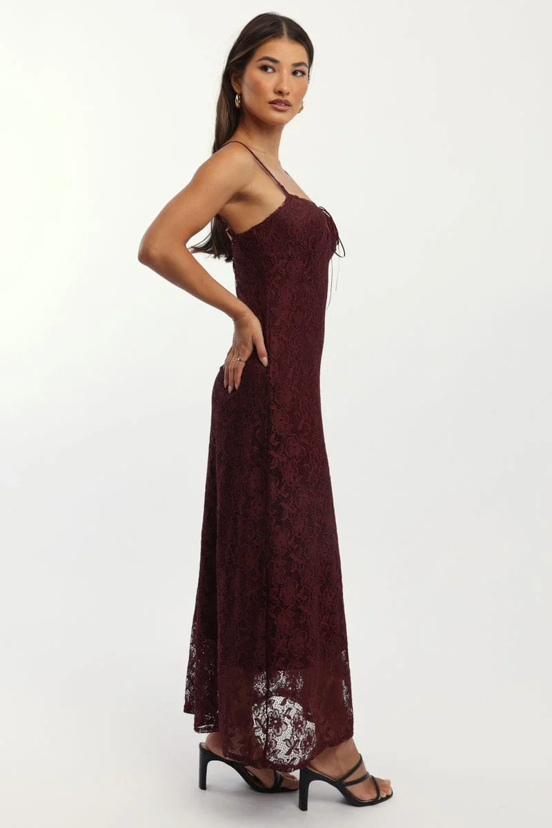 Moonlit Rendezvous Velvet Burnout Maxi Dress in Windsor Wine