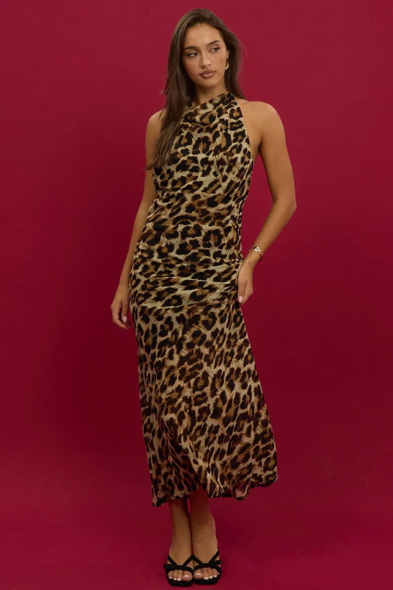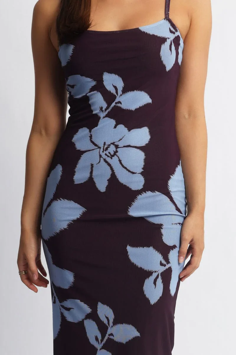 Brown Floral Bodycon Dress Maxi Mesh Â