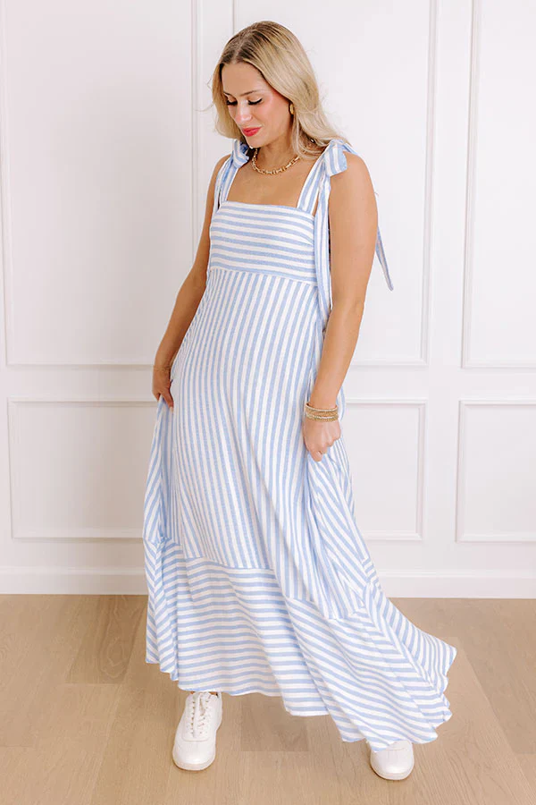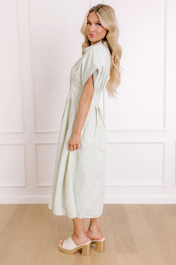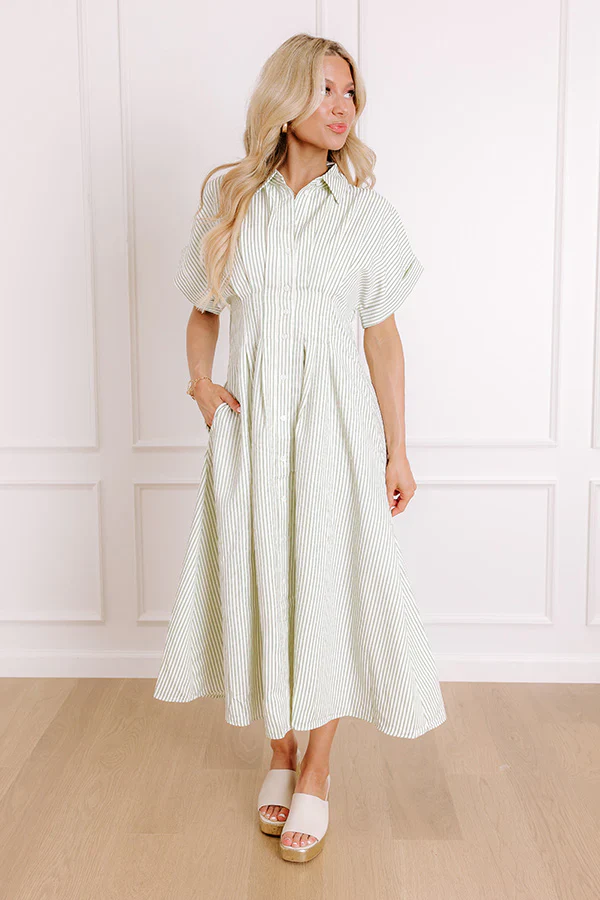 Sunlit Stroll Stripe Maxi Dress in Sage