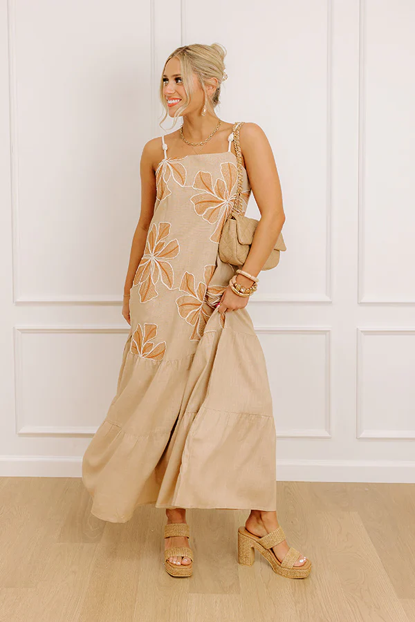 Vacay On The Mind Linen-Blend Embroidered Maxi Dress