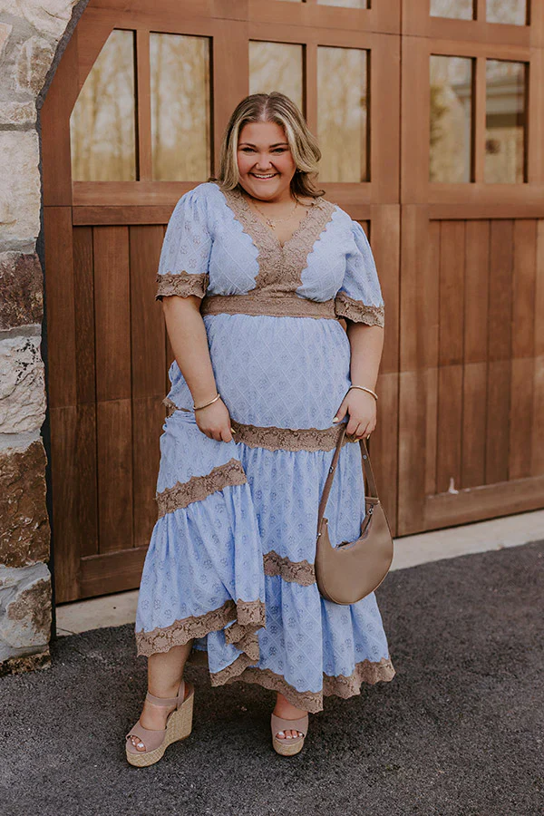 Key To My Heart Lace Maxi Dress in Sky Blue Curves
