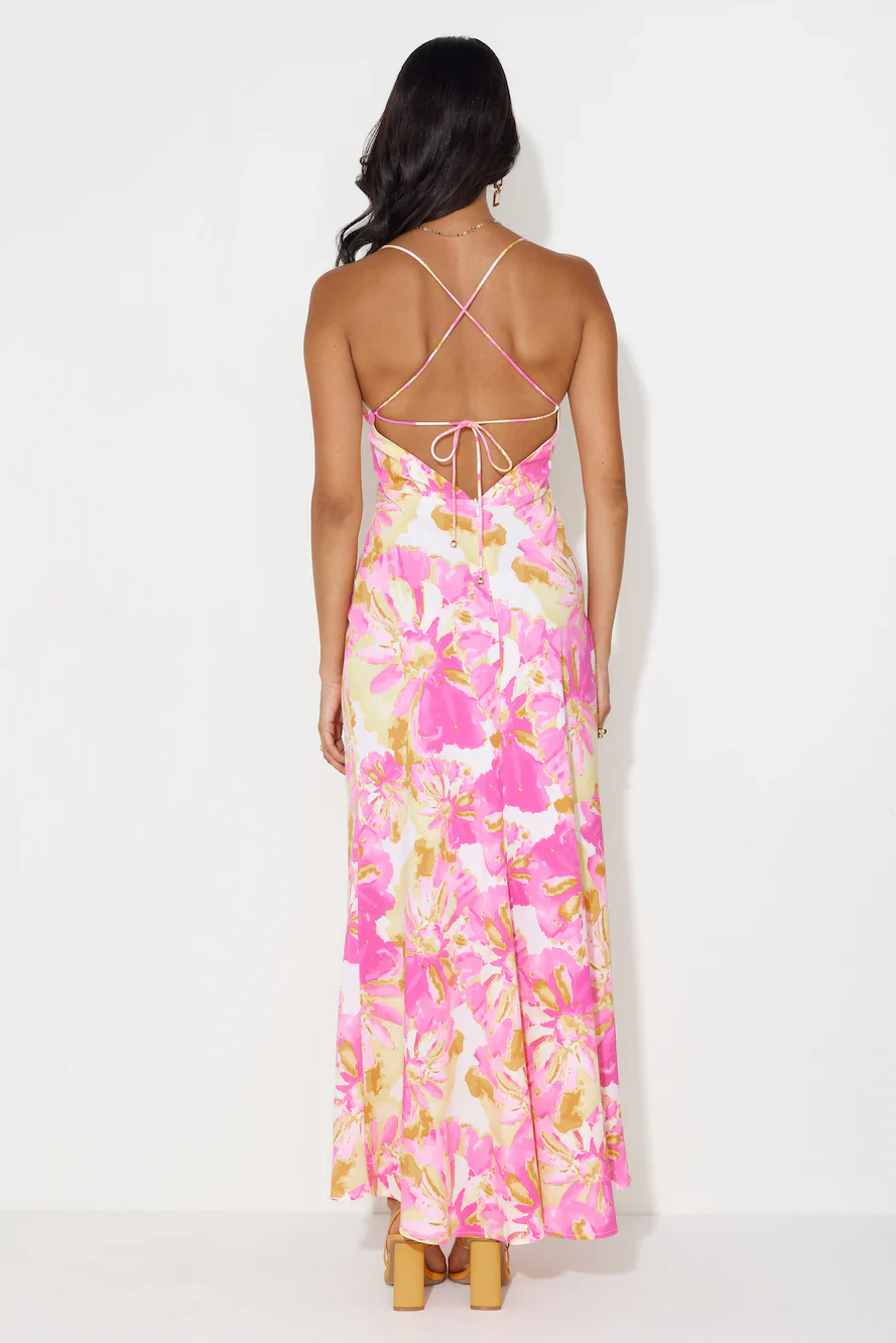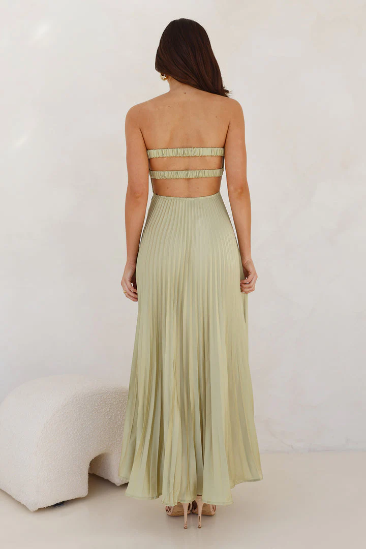 Frosted Berry Strapless Pleated Maxi Dress Lime