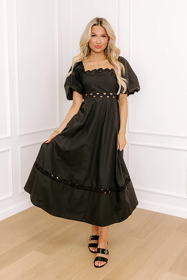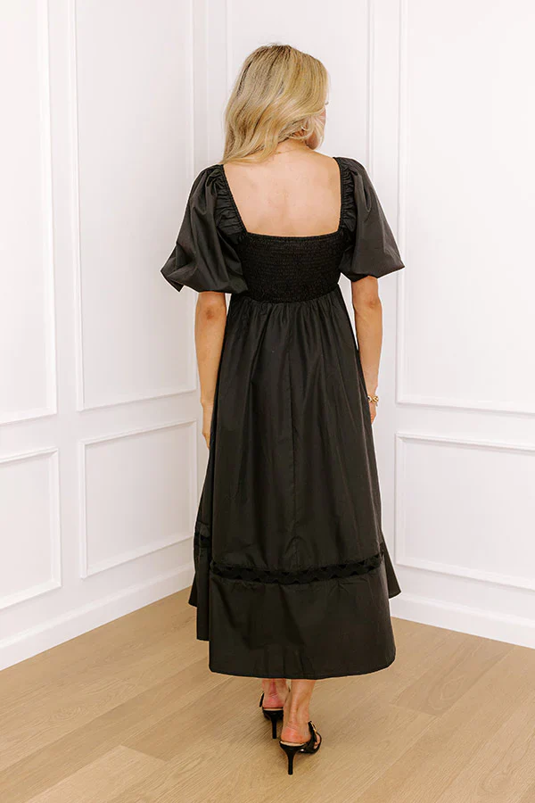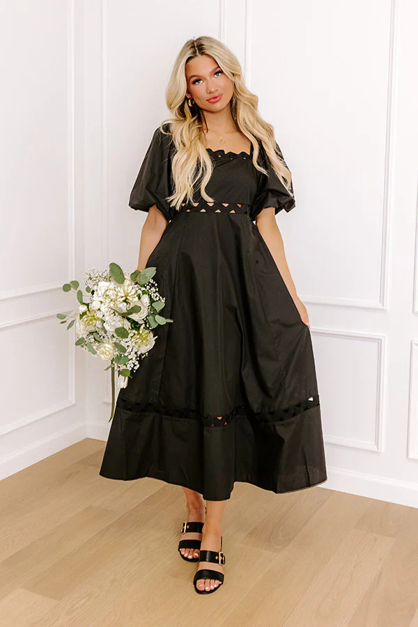 Whimsical Days Floral Midi Dress in Black