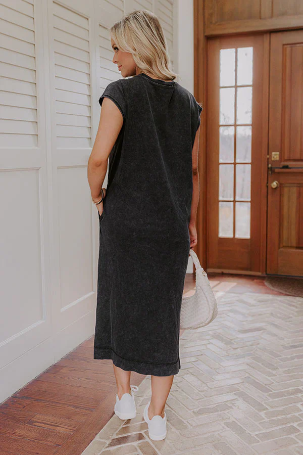 Beach Daydream Vintage Wash Midi Dress in Vintage Black