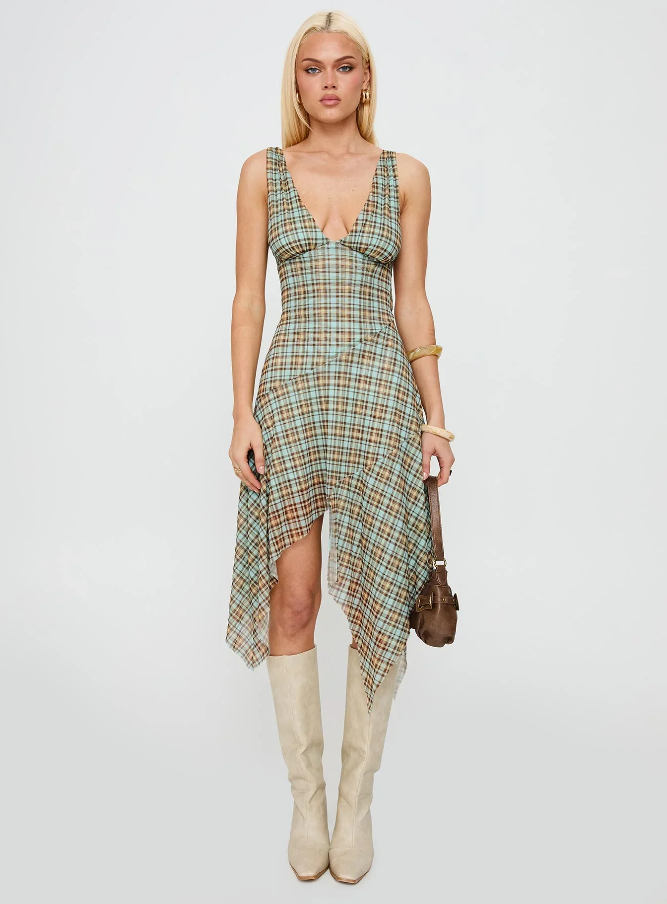 Blaize Asymmetrical Midi Dress Multi Check