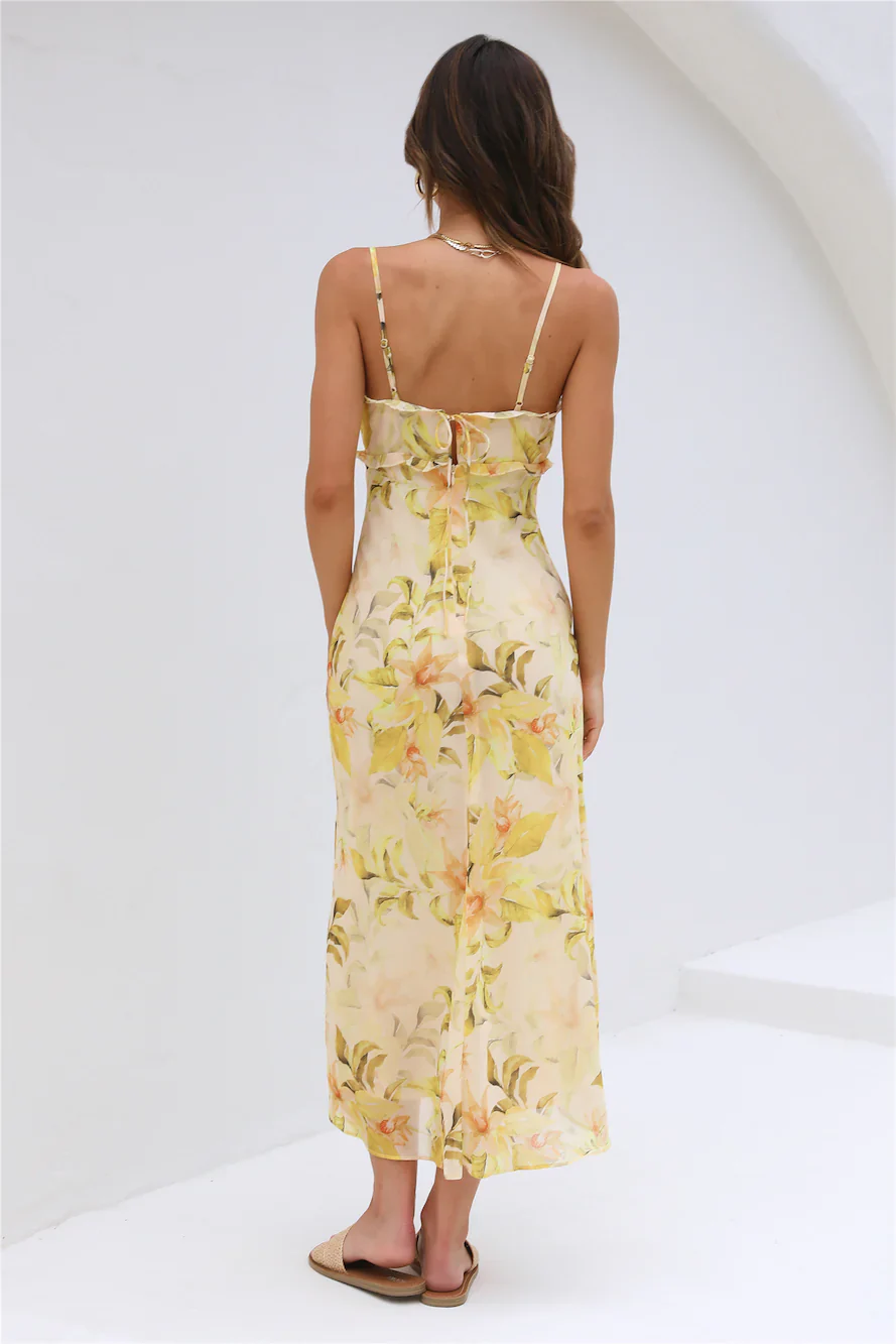 ASTR Luvita Floral Ruffle Chiffon Midi Dress