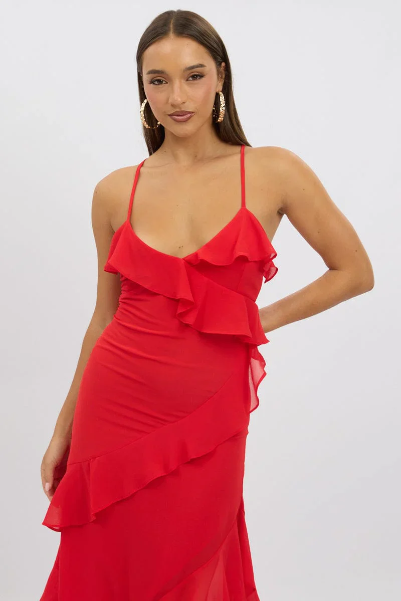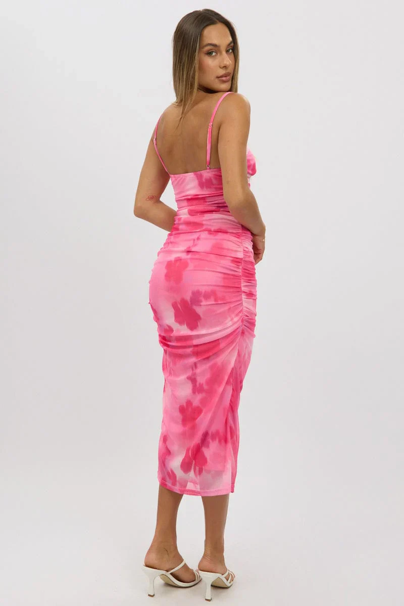 Pink Floral Bodycon Dress Singlet Mesh Midi