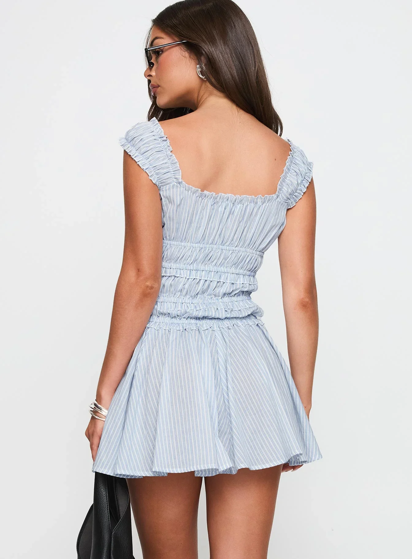Wonderlust Shirred Mini Dress Blue Stripe