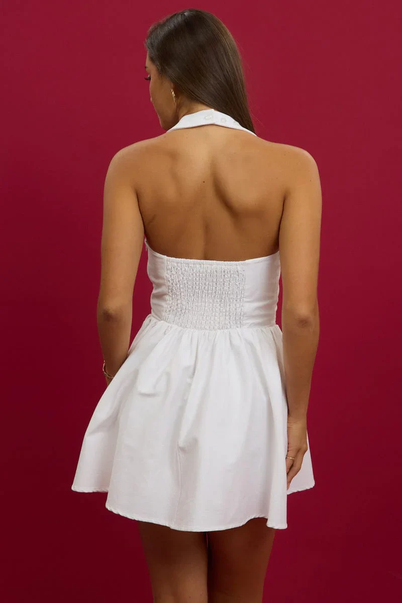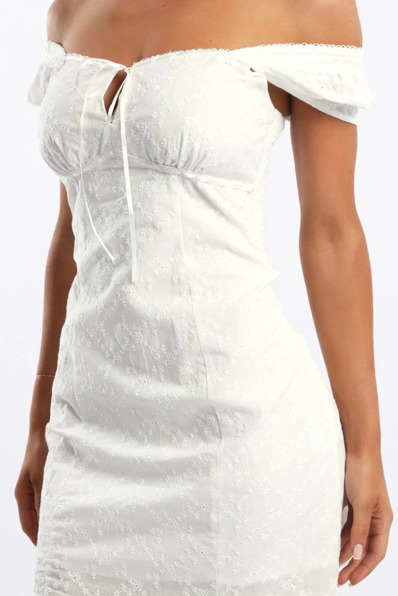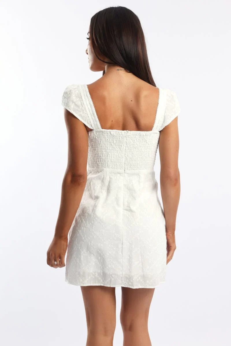 White Mini Dress Ribbon Detail Eyelet Fabric