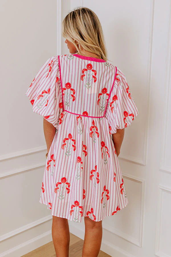Sippin' Rose Stripe Mini Dress