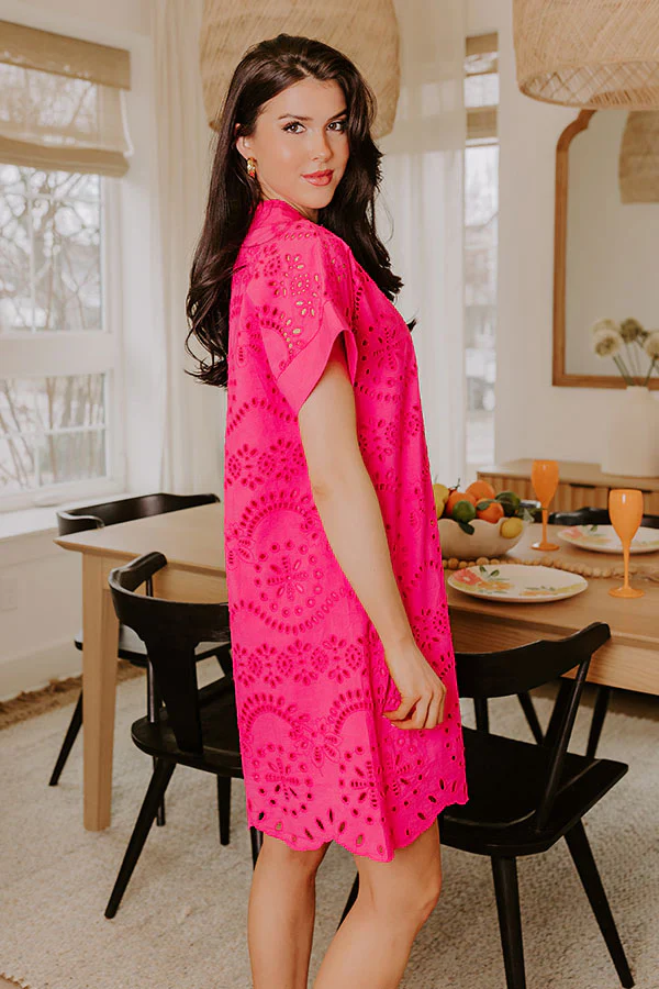 Smiles And Sorbet Eyelet Mini Dress in Hot Pink