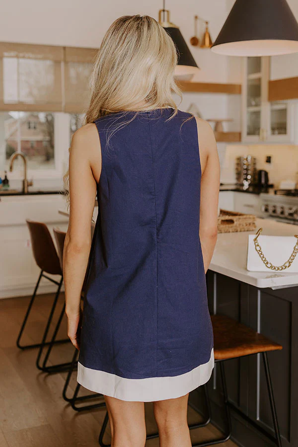 Mykonos Cruise Linen-Blend Mini Dress in Navy