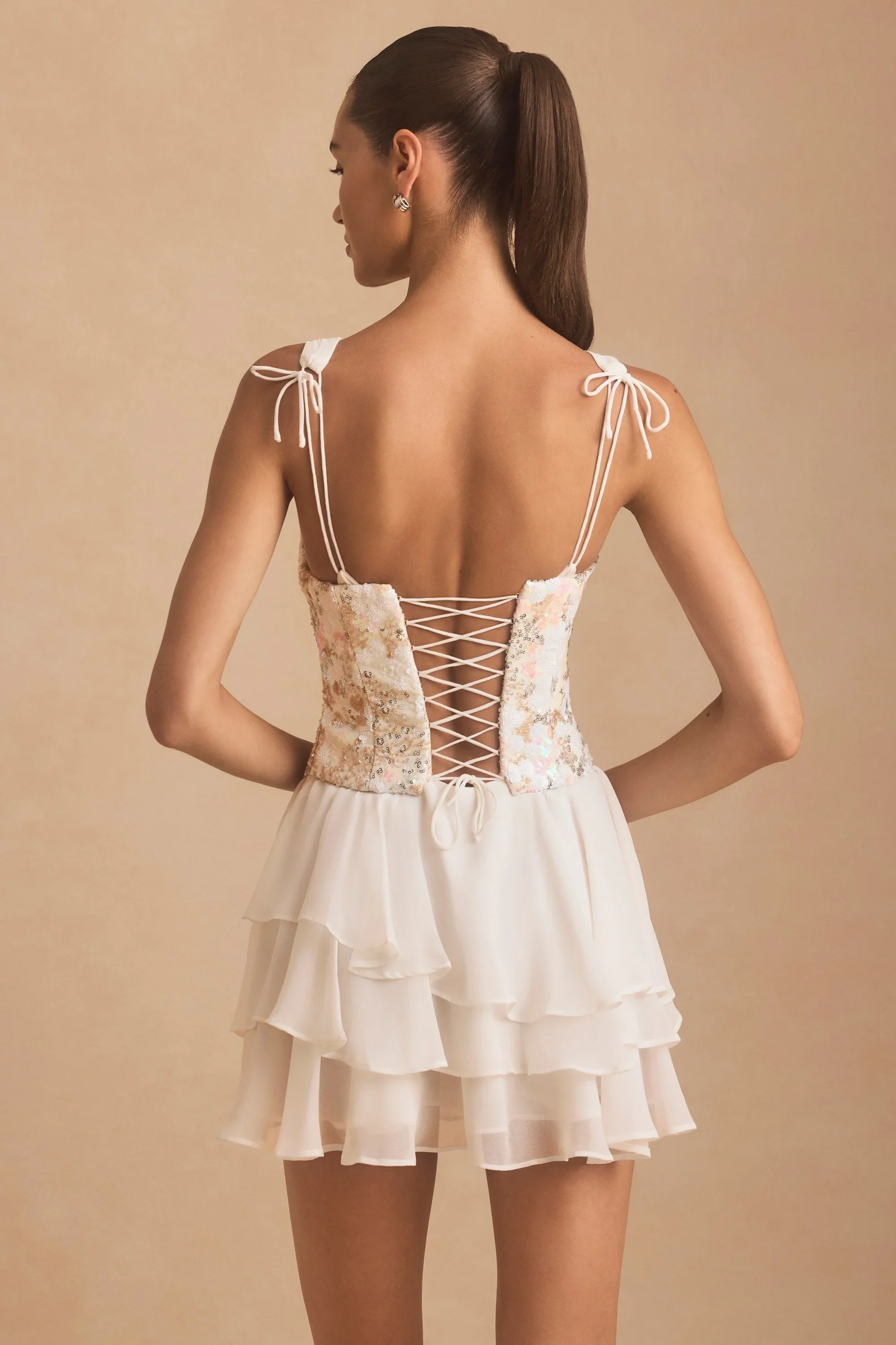 Embellished Camisole Bodycon Mini Dress in Ivory