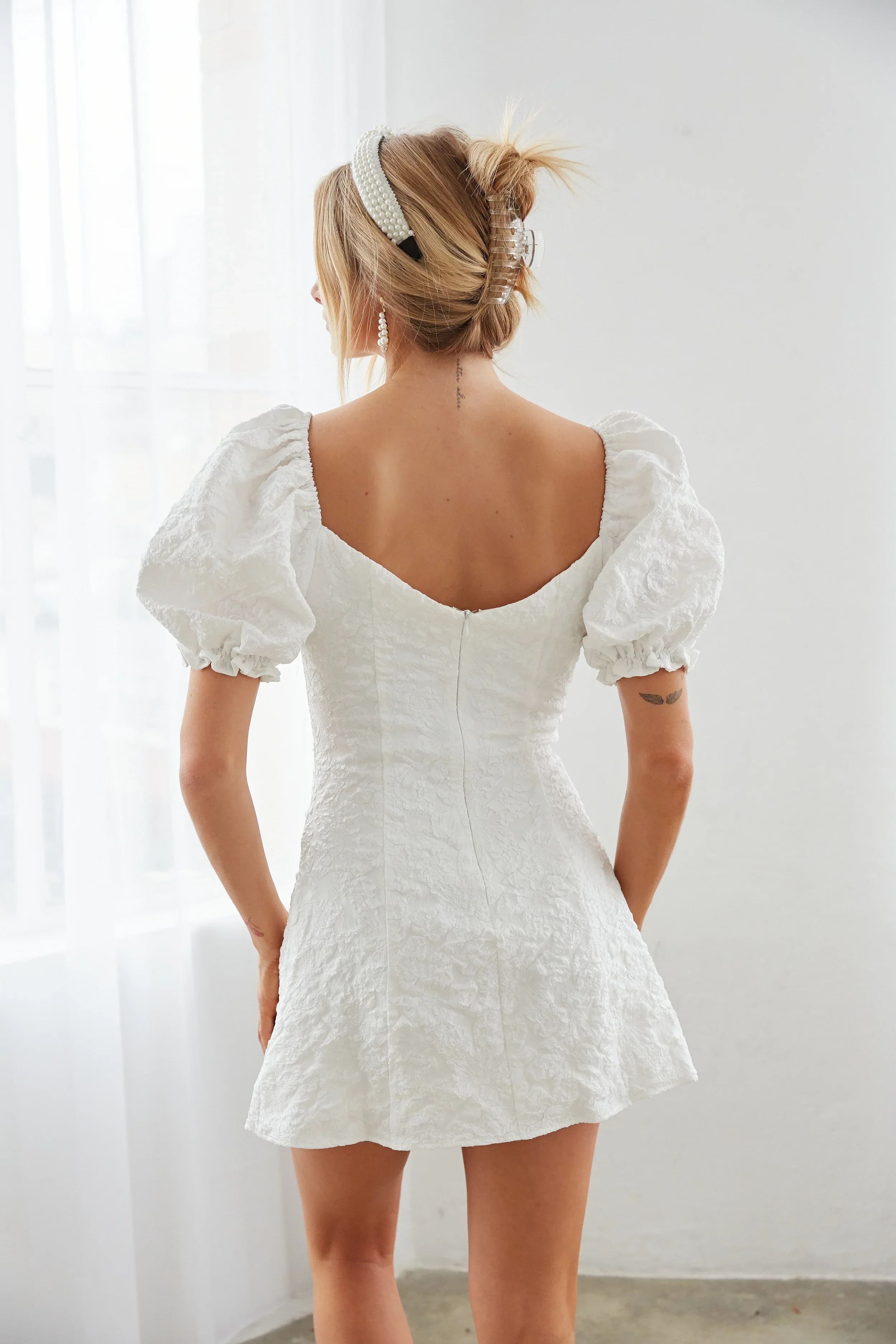 Dallas Open Back Puff Sleeve Babydoll Mini Dress