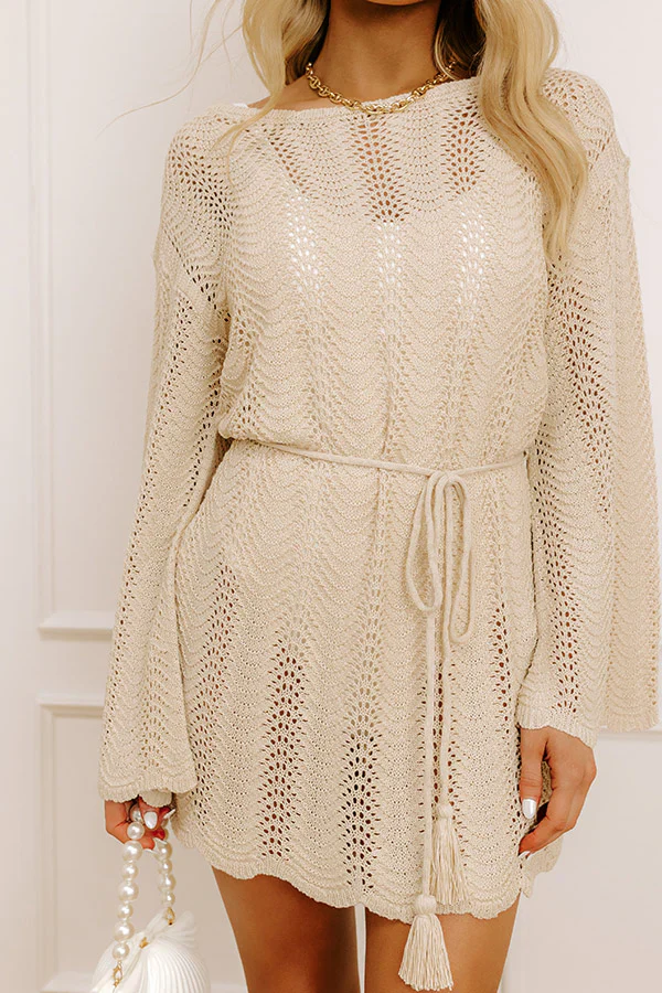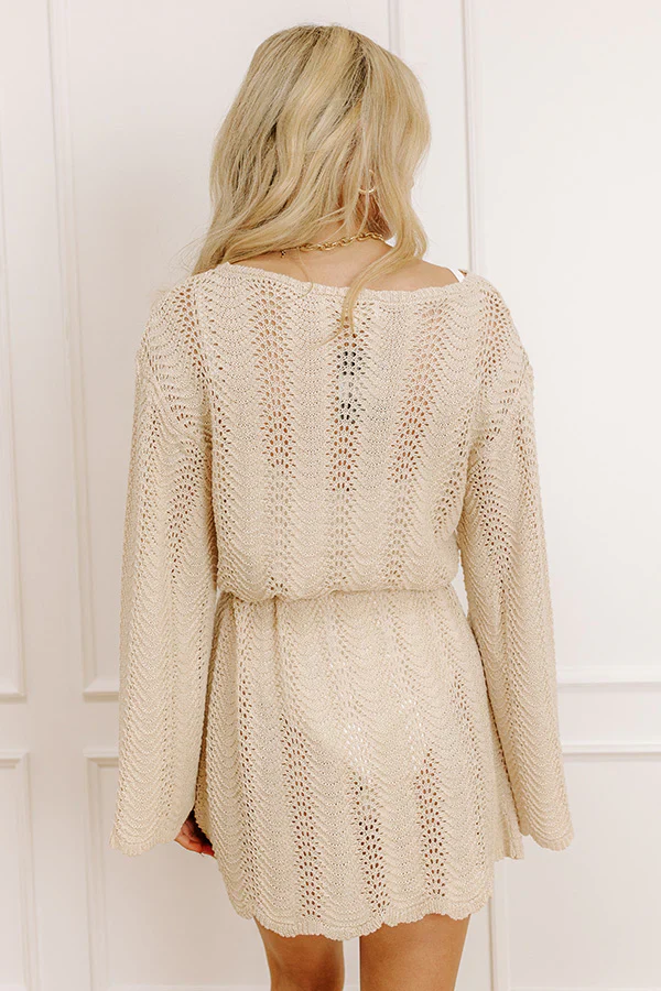 Oceanside Dreaming Pointelle Knit Mini Dress in Oatmeal