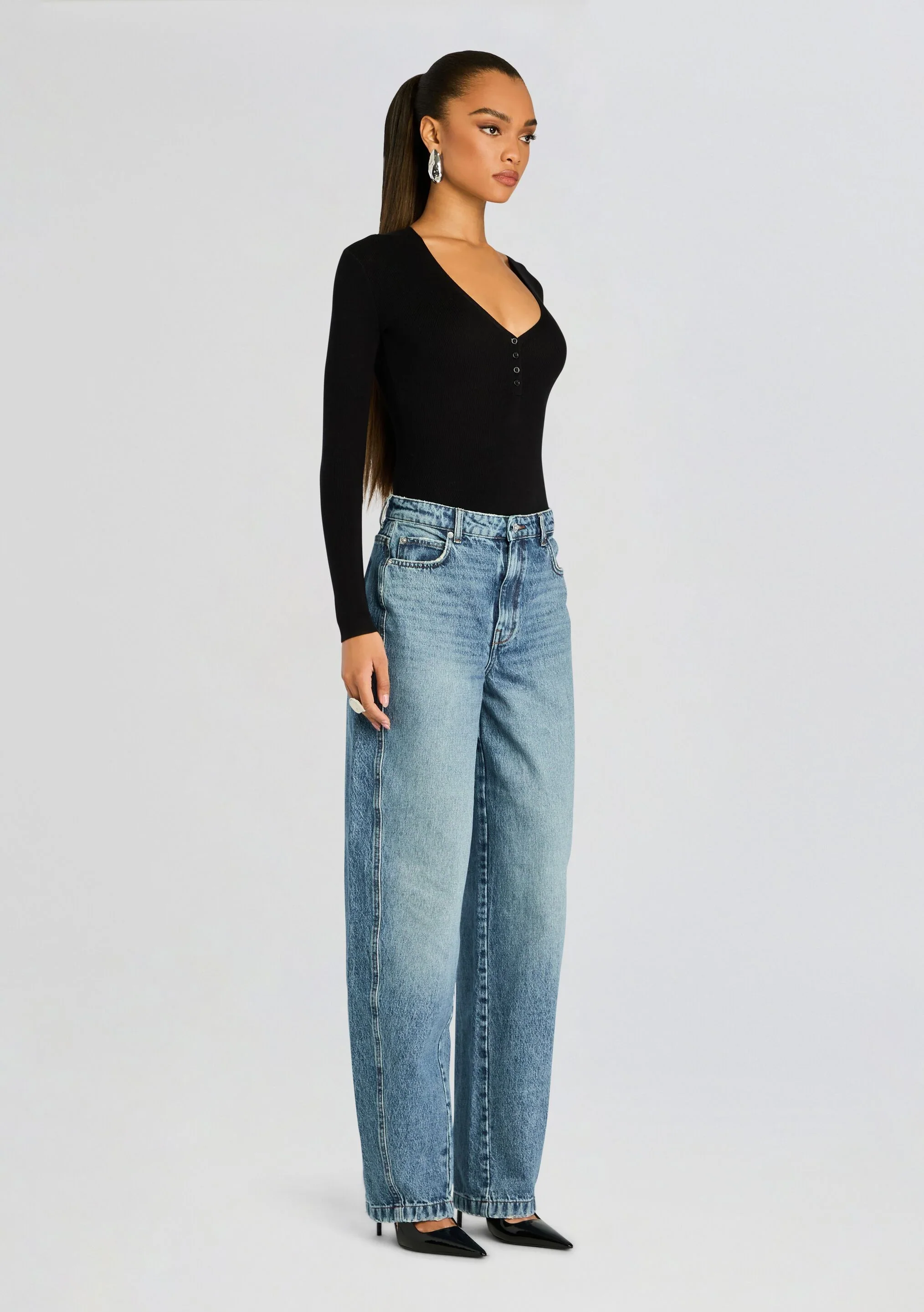 Night Owl Mid Rise Straight Leg Jean Grunge Wash