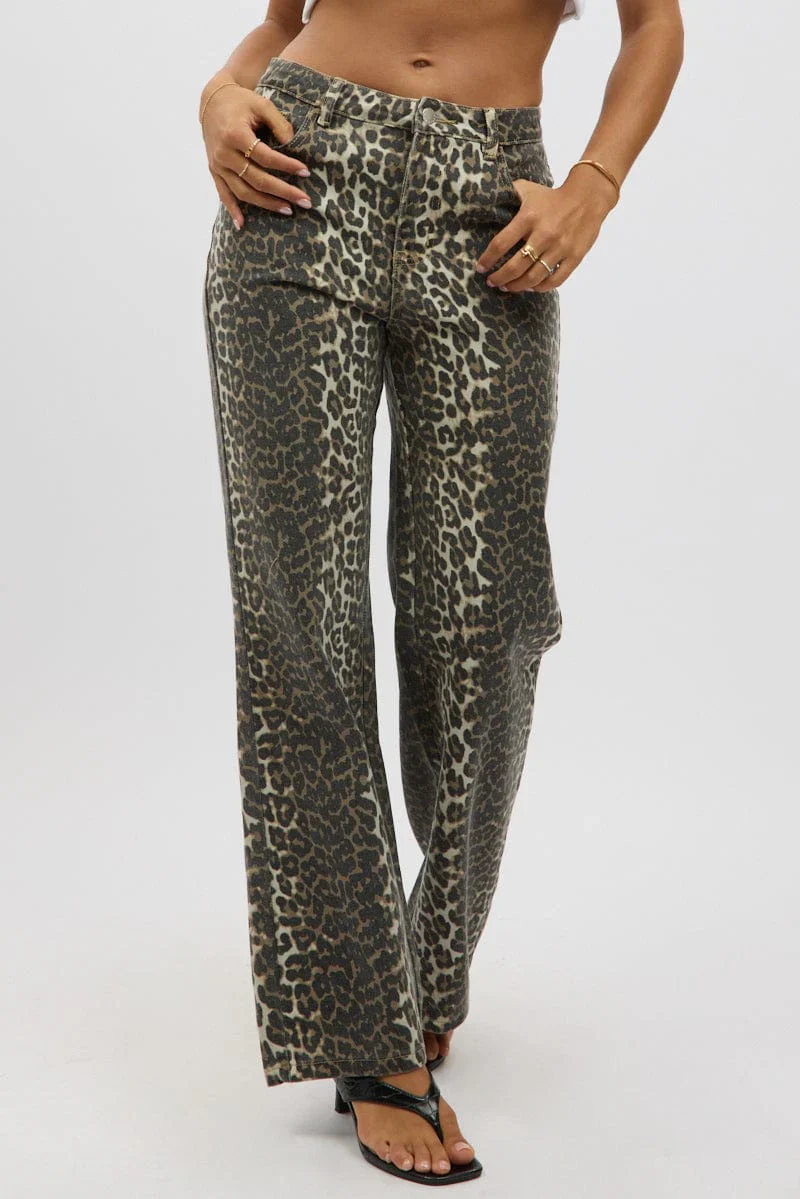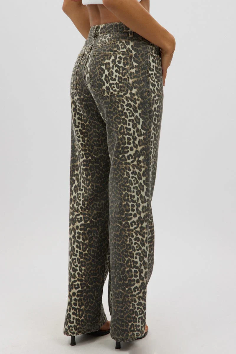 Brown Animal Print Baggy Jeans Leopard Pattern
