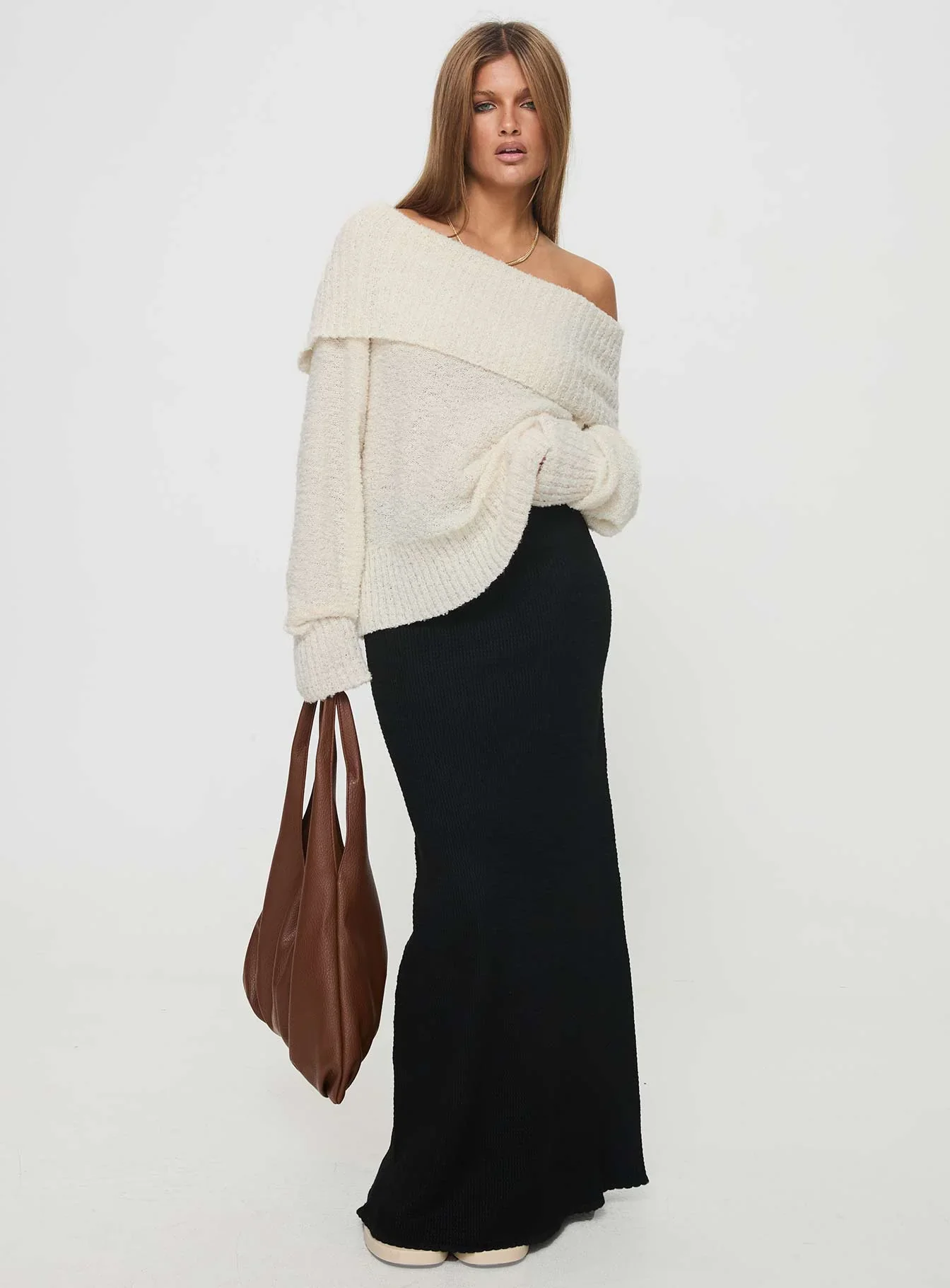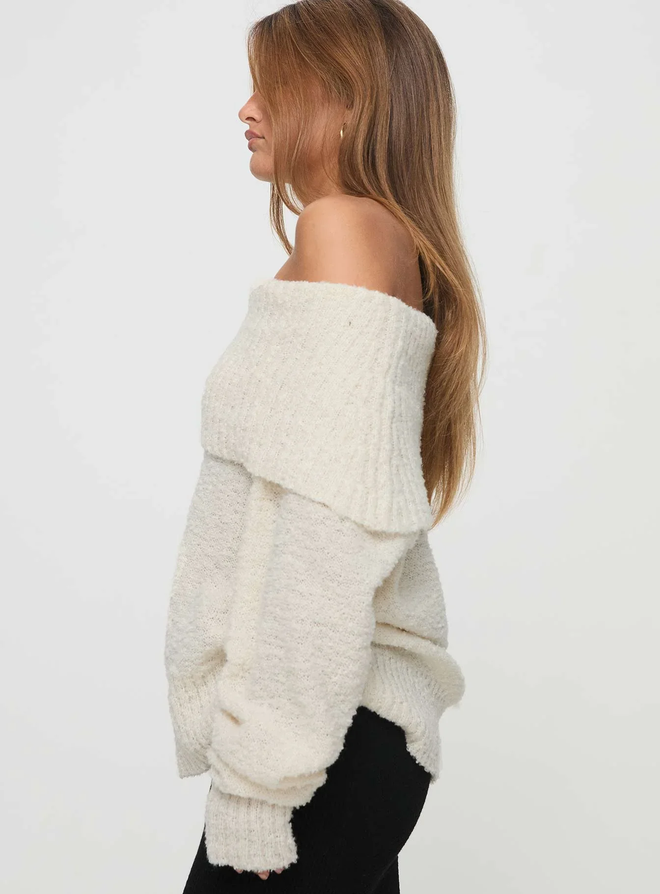 Parkley Boucle Off The Shoulder Sweater Cream