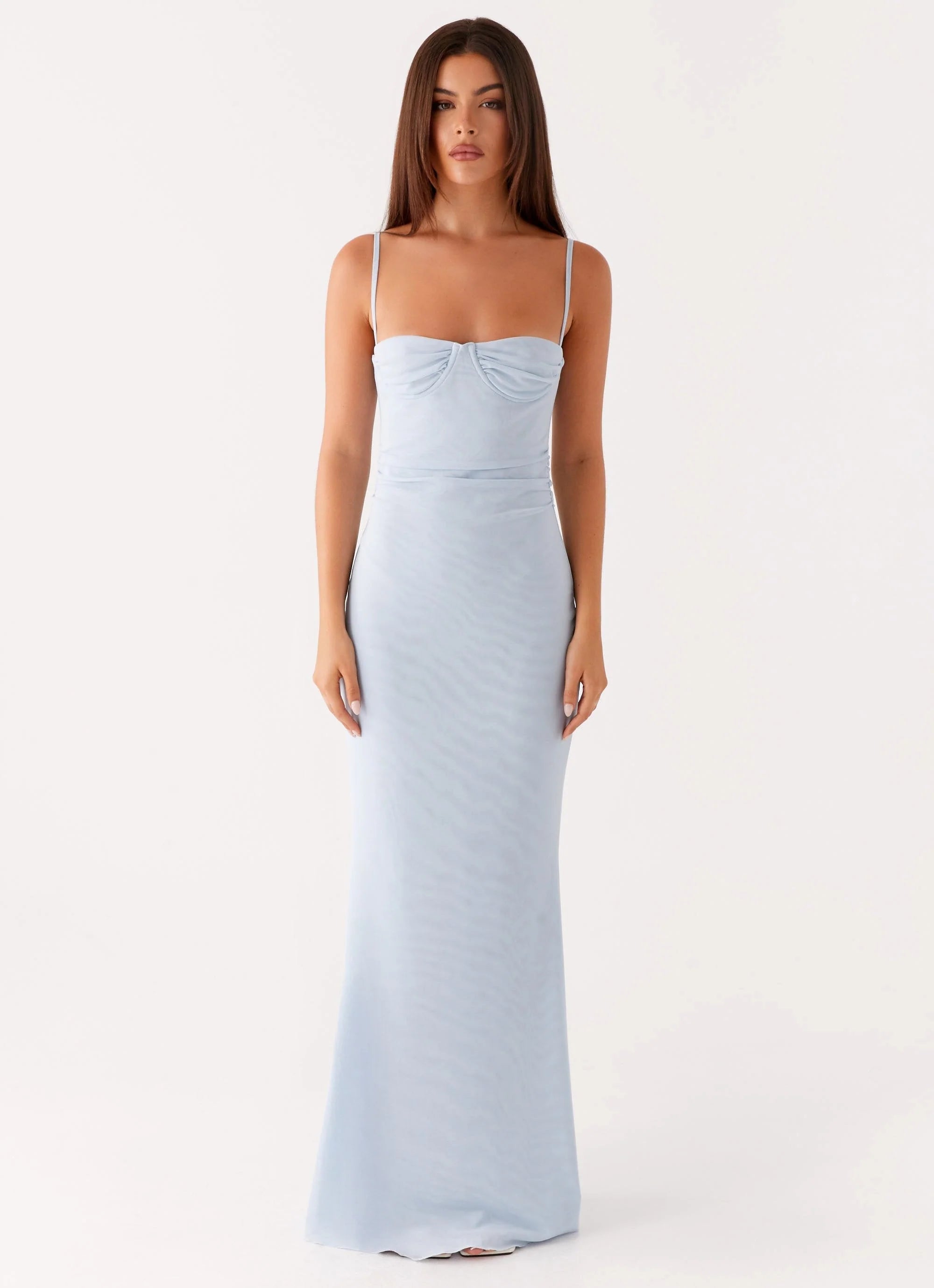 The Anna Sophia Maxi Dress is a sophisticated and flattering choice for any occasion. Featuring a sweetheart neckline and a wired underbust for added support and shape, it offers a fitted silhouette that enhances your natural curves.