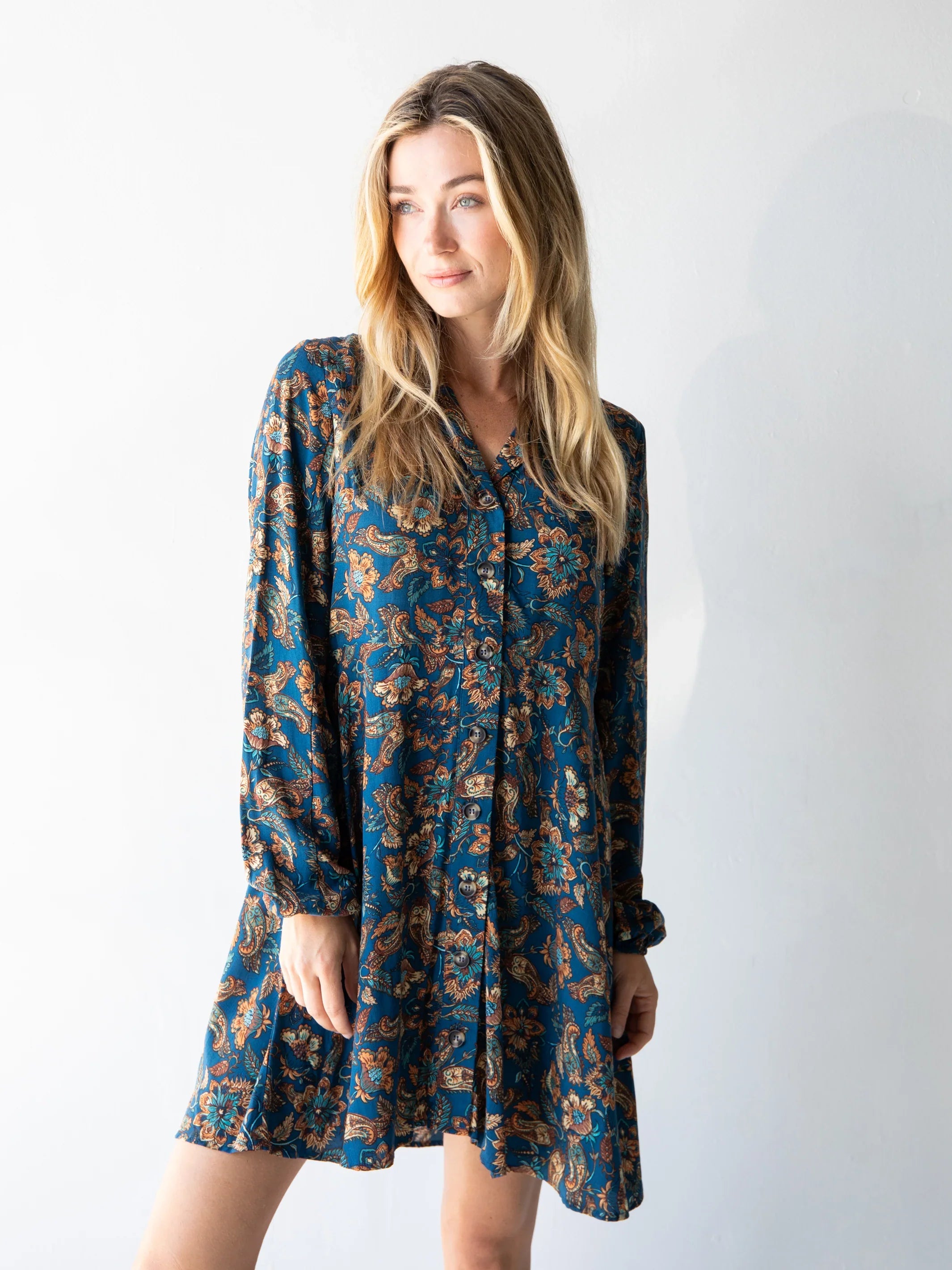 Casual and simple, with a vintage design! You’ve probably never seen a shirt dress this cute! The empire waist bodice has a traditional collar and cuffs that finish slightly full sleeves. This wardrobe essential has a trapeze style that swings and flares to a mini dress length! Life is happy when you can wear a dress All. Year. Round!