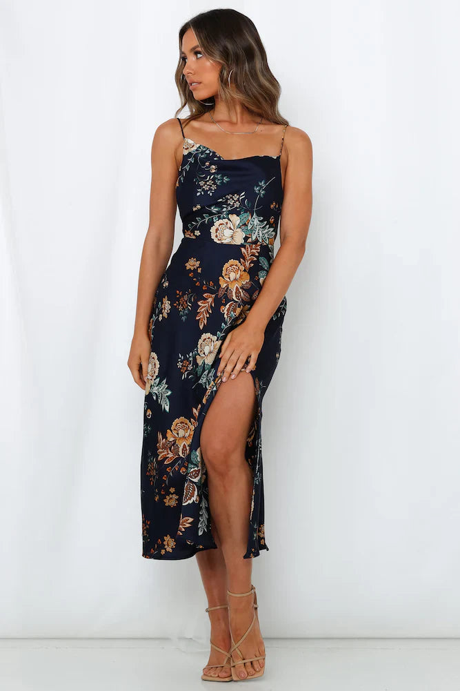 Be a MAXI in a room filled with minis with our Atlas Maxi Dress. Perfect for those who love to flaunt their femininity, this elegant satin gown offers a backless style complemented by a soft, draped cowl neckline. Focus on the dress's romantic print by styling it paired back or pearl-tone accessories and heels.
