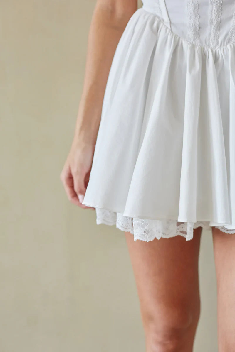 Spring has sprung in the Belle Lace Trim Corset Fit and Flare Mini Dress. This bright mini dress features a flattering fi and flare silhouette, lace trim detailing, and romantic corset bodice. Available in Butter Yellow, style with a pair of to complete the look!