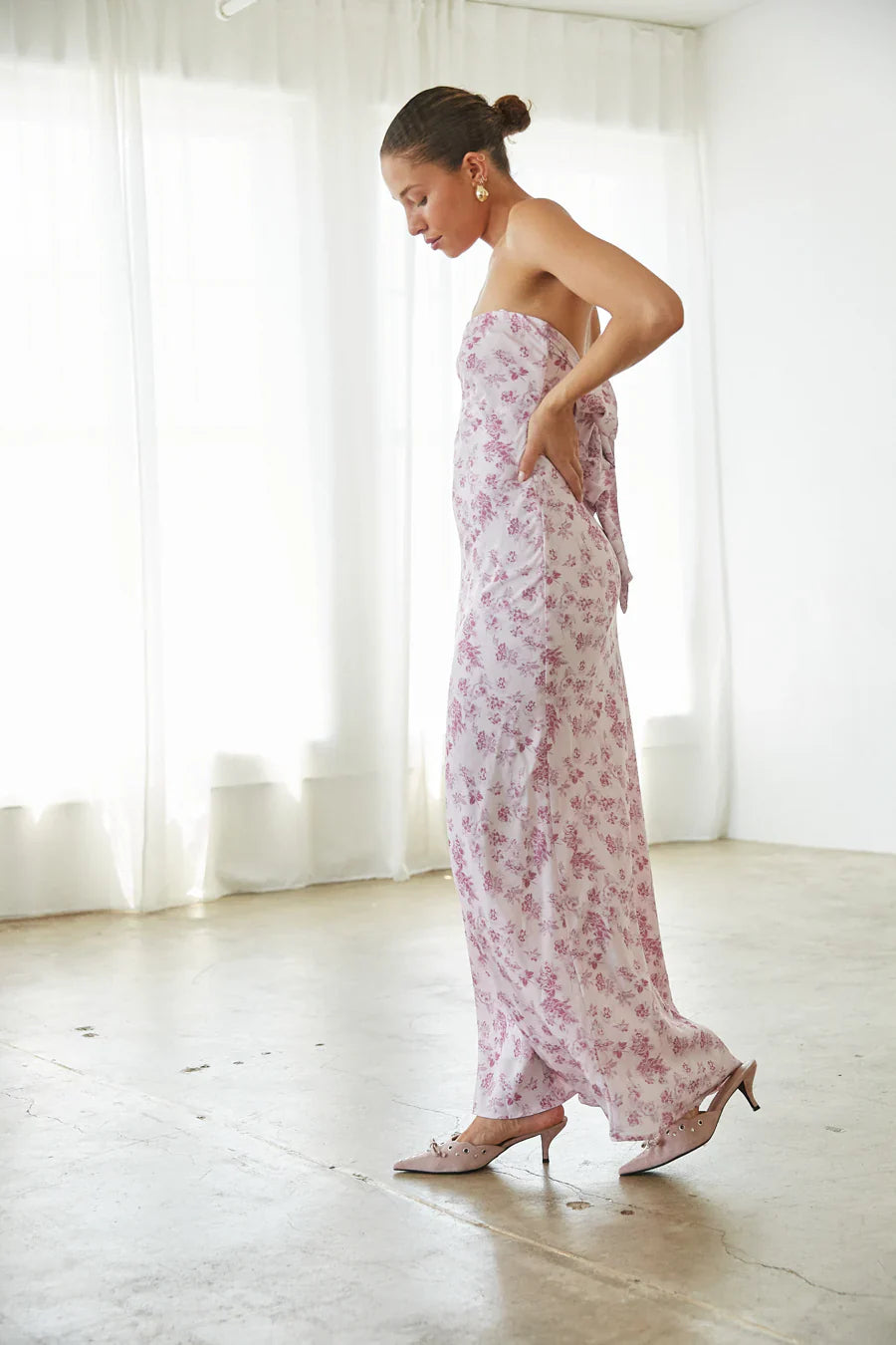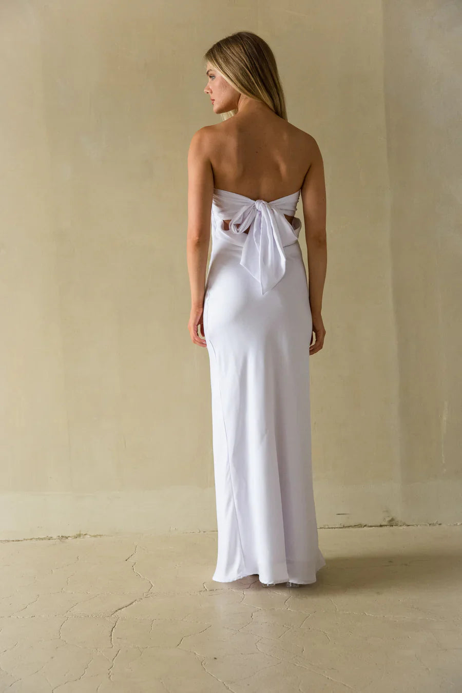 Steal the show in the Britt Strapless Tie Back Maxi Dress! This gorgeous dress features a sleek, strapless neckline and a low cowl back with a gorgeous statement bow below the shoulders. Available in Cobalt Blue, White, and Deep Blue. Complete this formal look with your favorite !