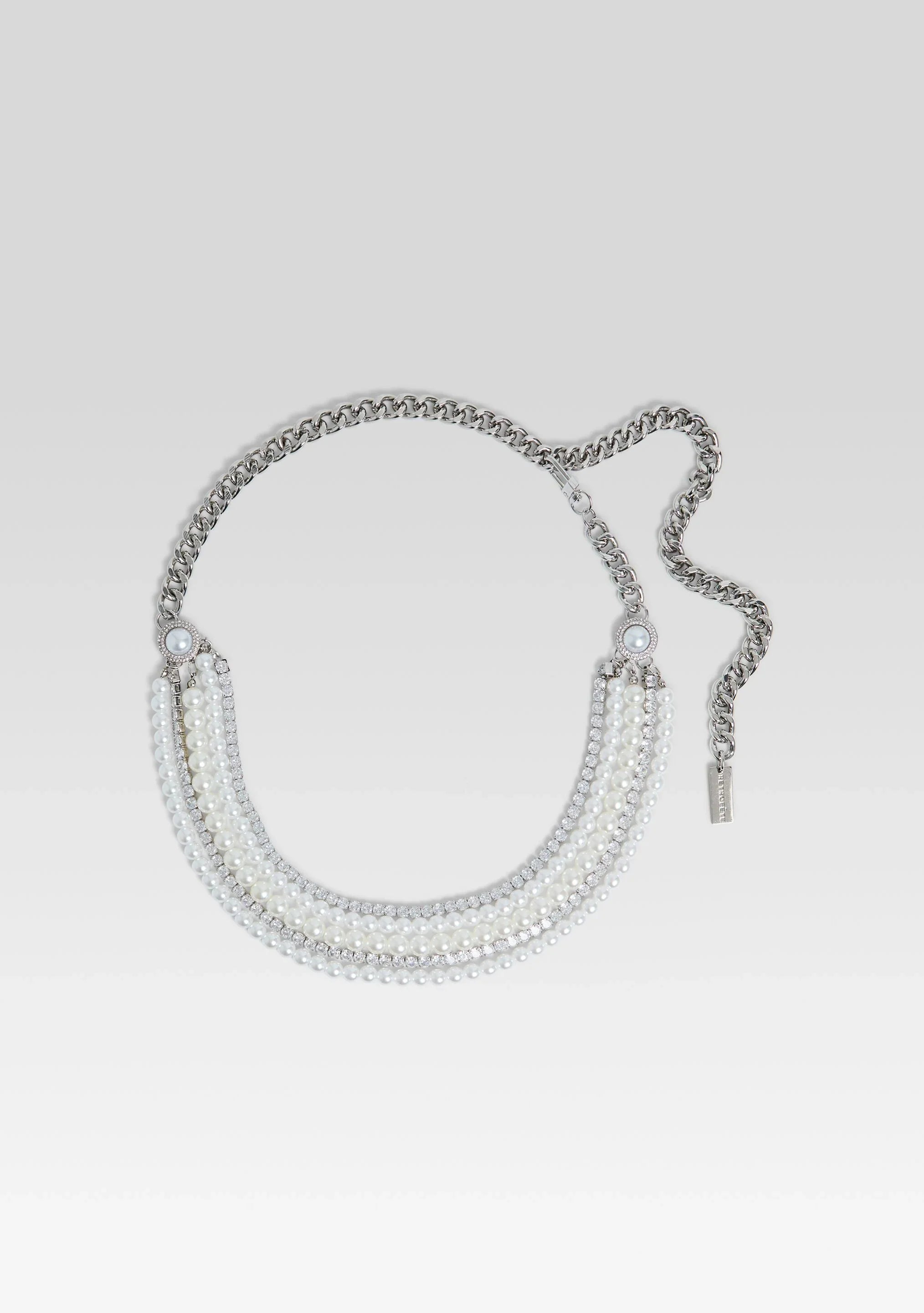 Indulge in luxury with the Chloe Pearl Chain Belt. Crafted with layered chains and adorned with delicate pearls, this belt exudes elegance and sophistication. Perfect for any occasion, it adds a touch of class and beauty to any outfit. Elevate your style with this timeless accessory.