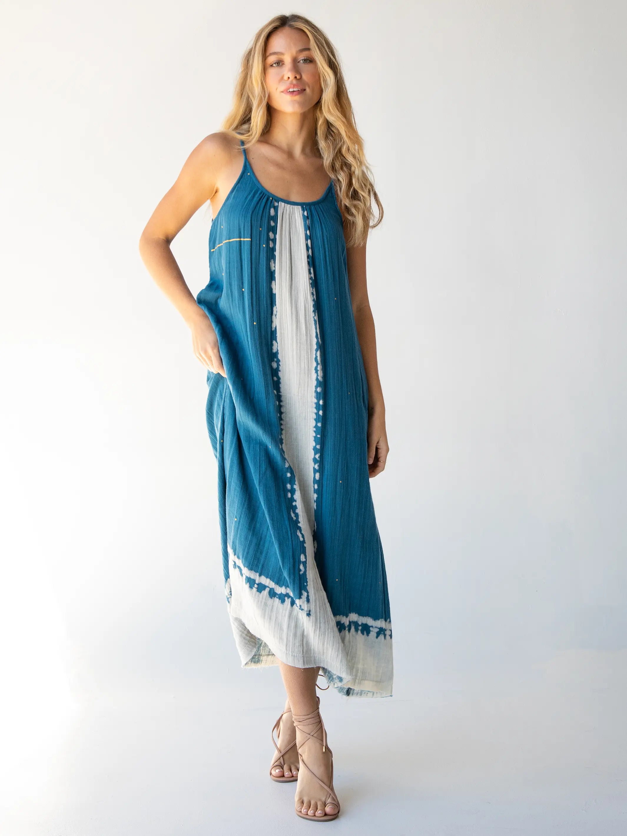 Hello summer! The Coco Sayulita Maxi is the ultimate beach cover-up, house dress, or out and about dress! It’s comfy, cool, and cute, of course! You will adore this hand-dyed, tie-dyed maxi dress! This super soft sleeveless dress has a frayed edge hem and is made from a double layer of gauzy loveliness -- muslin gauze has the best texture! Throw it on as a bathing suit cover-up at the pool and then head out to lunch - OR work from home and stay comfy ALL day!