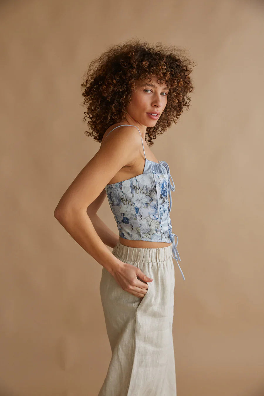Show off your effortlessly sweet style in the Delphine Lace Up Floral Satin Corset Top! This adorable crop top is made of a satin material and features a floral print with a contrast trim, an open lace-up front, corset-style bodice, and thin adjustable spaghetti straps that tie in the front. Pair with you go-to to complete the look!