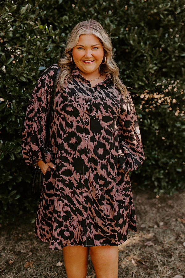 - Step into chic everyday style with this trendy mini dress! With Its stylish leopard print and a collared neckline, it effortlessly blends casual and sophisticated vibes, making it perfect for any occasion. Pair it with your favorite ankle boots and a touch of jewelry for a polished look that's sure to leave a lasting impression. - Fully lined black and hazelnut colored leopard print material - A collared neckline - A buttoned - Long, loose sleeves with elastic cuffs - Hidden side pockets - A flowy silhouette that ends in a straight, mini dress length hemline