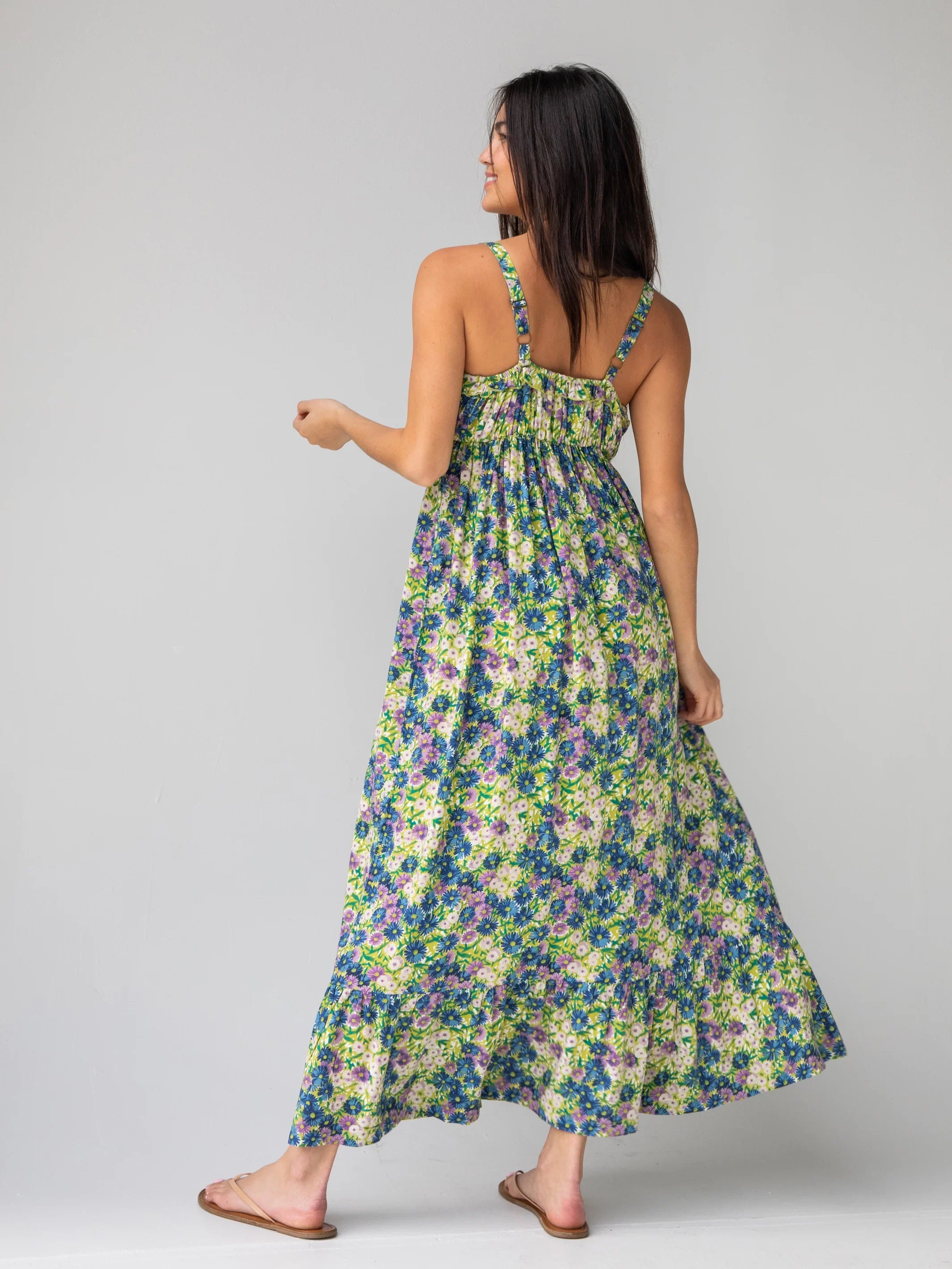 Our Elizabeth Maxi will be one of your new closet staples that you’ll turn to for every occasion. The beautiful green floral print makes it perfect to wear to outdoor weddings, baby showers, graduations, garden parties... you can literally wear it anywhere! It has adjustable straps, a pretty ruffle detail and an adjustable tie at the front so you can cinch it to fit at your comfort level. The empire waist fits true to size and flows out with a tier at the bottom. Grab this charming, boho dress in all of our colors so you have one for each occasion!