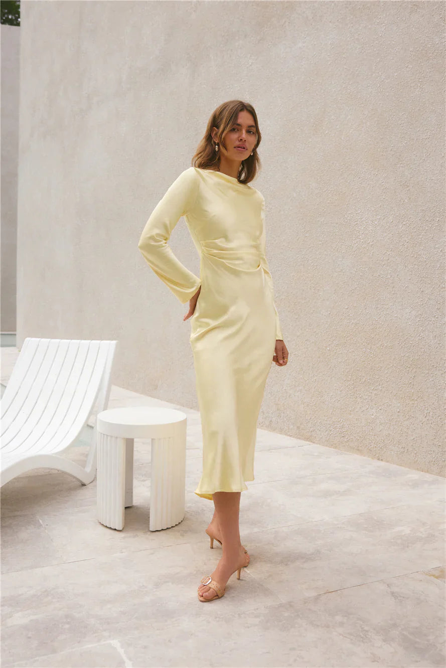 The Forget Me Not Satin Maxi Dress in Butter combines timeless elegance with modern flair, perfect for garden weddings in the English countryside or sophisticated soirées in a Tuscan villa. Embrace the romance of summer with this enchanting dress, designed to leave a lasting impression.