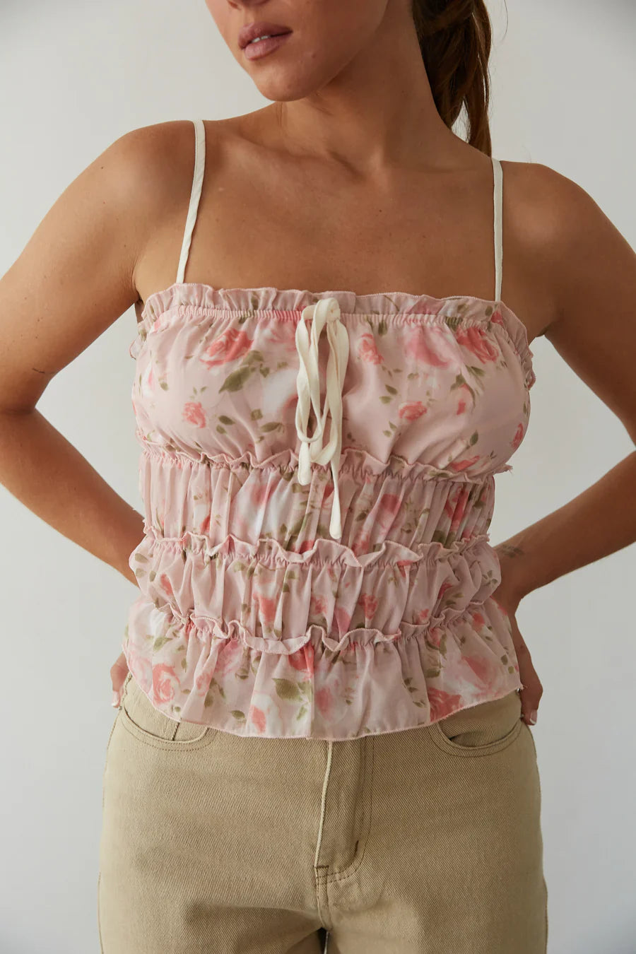 Summer never ends in the Gianna Floral Chiffon Smocked Top! This features an angelic floral print, chiffon ruffles, and all over smocking! Available in Pink Floral; complete the look with your choice of !