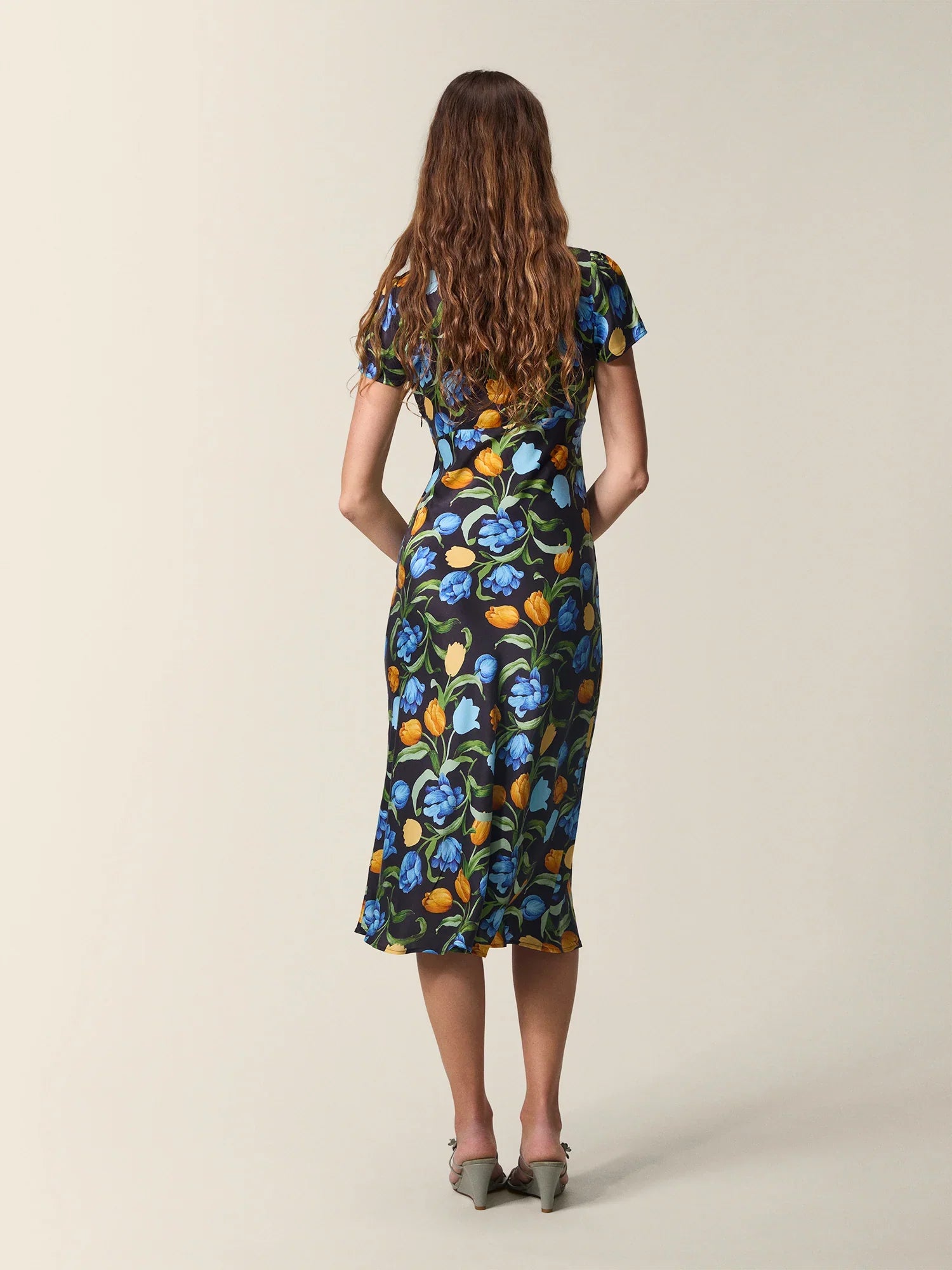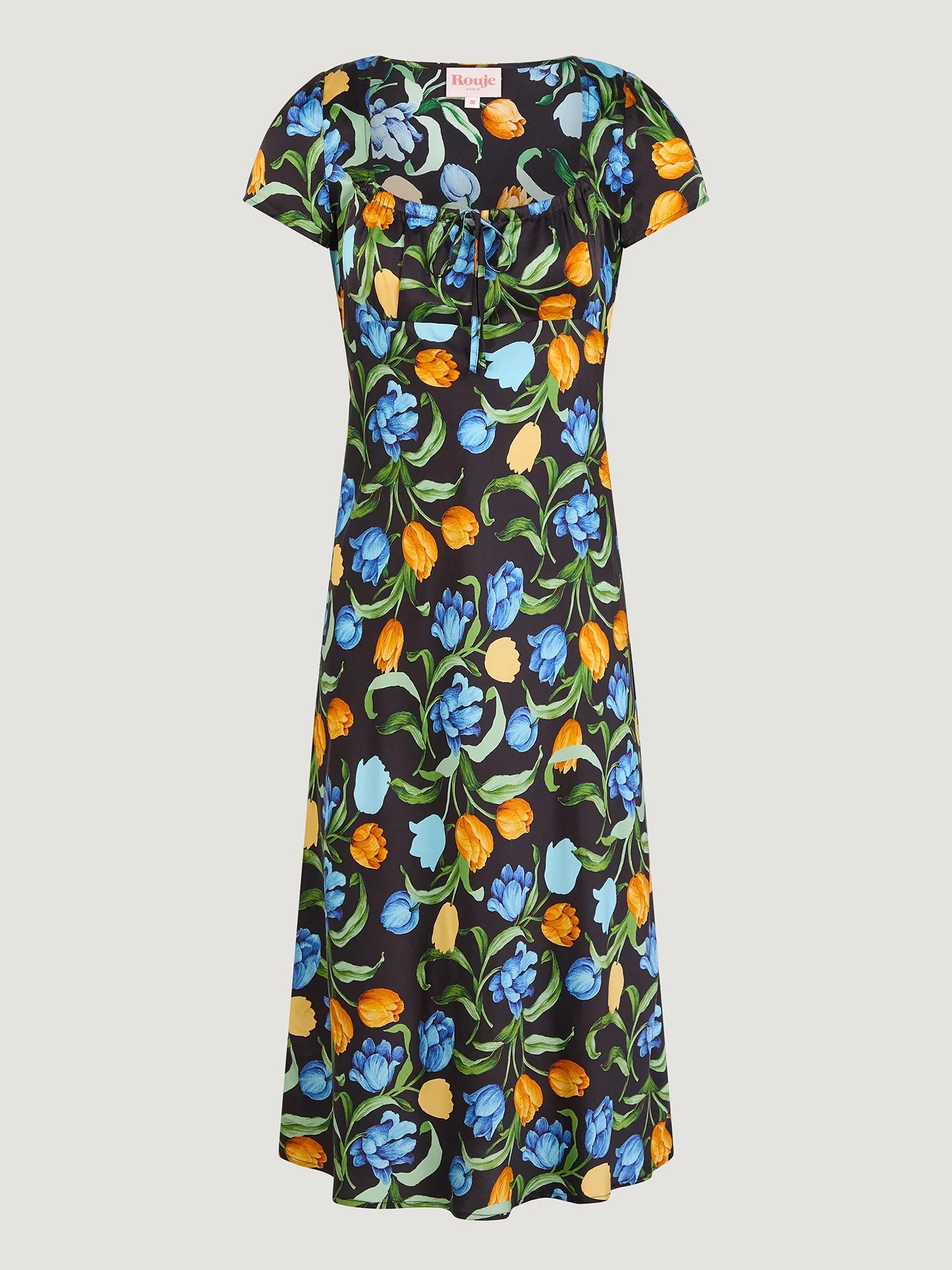 Short-sleeved midi dress.