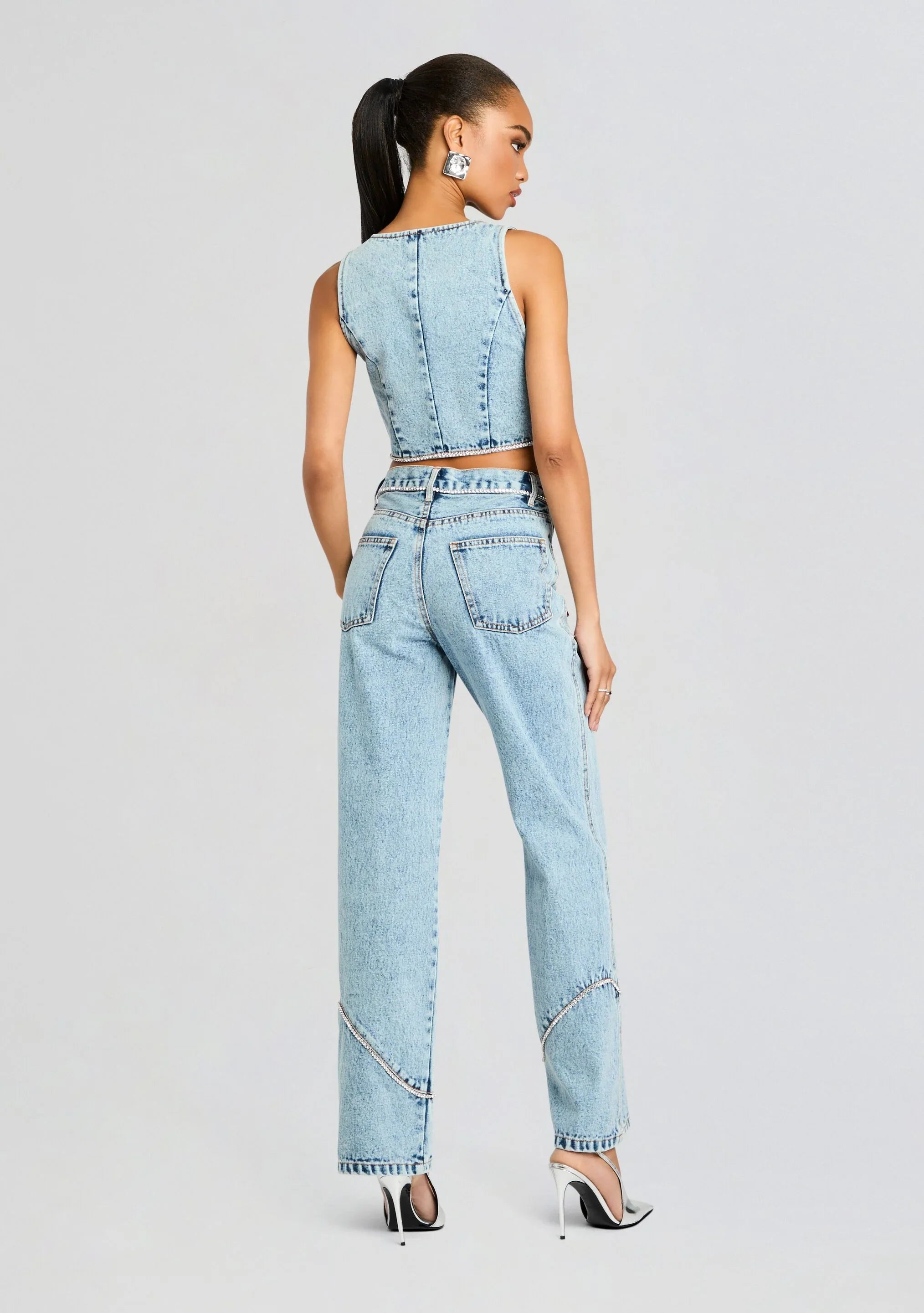 Indulge in luxury with our Izzie Embellished Jeans. Featuring exquisite embellishments and a classic straight leg design, these jeans will elevate any outfit. Experience the perfect blend of style and comfort with our premium denim.