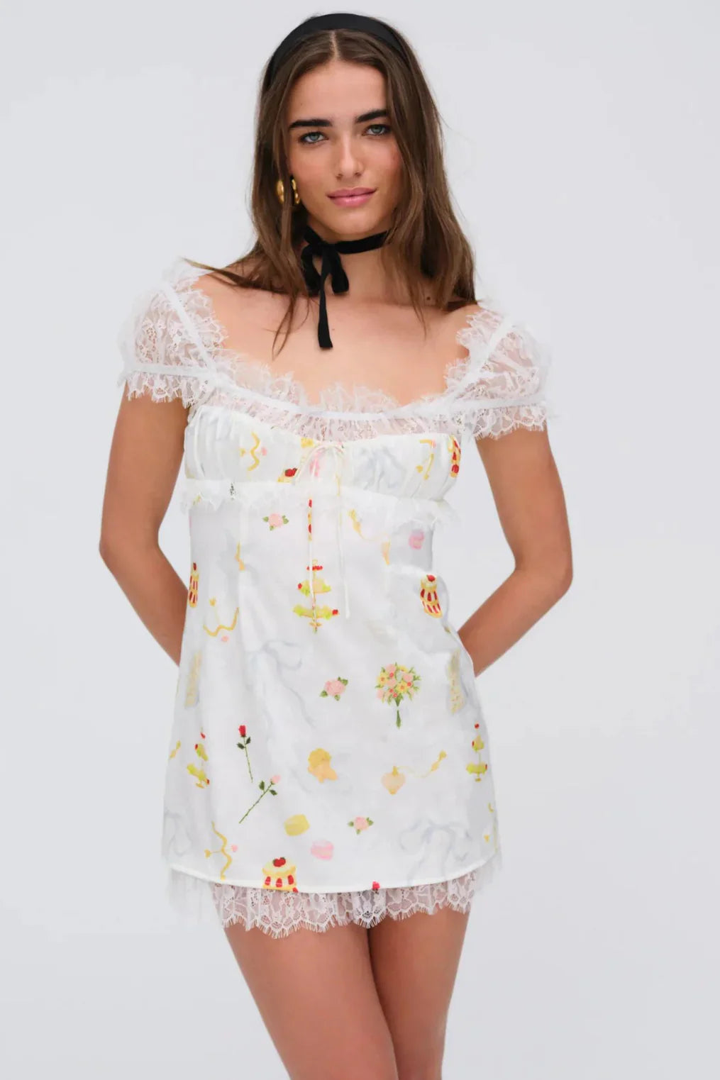 Printed ruffle mini dress.