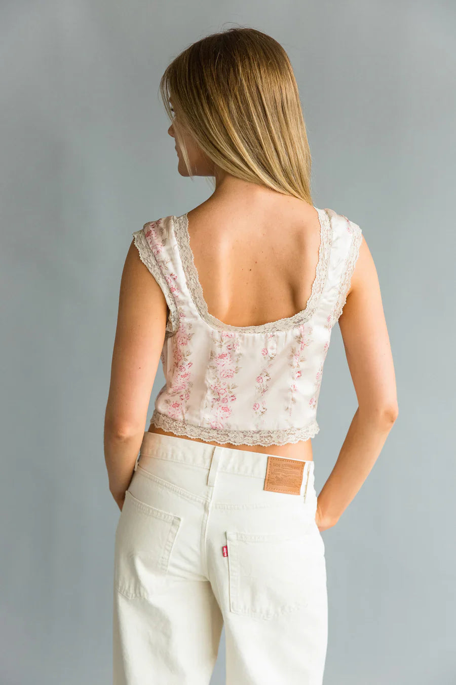 Oh so dainty, the Kaeli Lace Trim Floral Satin Top is the perfect summertime top! Featuring delicate lace trim, a satin floral patter, and tie front closure, this blouse is perfect for the sweetheart in us all! Pair with your favorite pair of to complete the look!