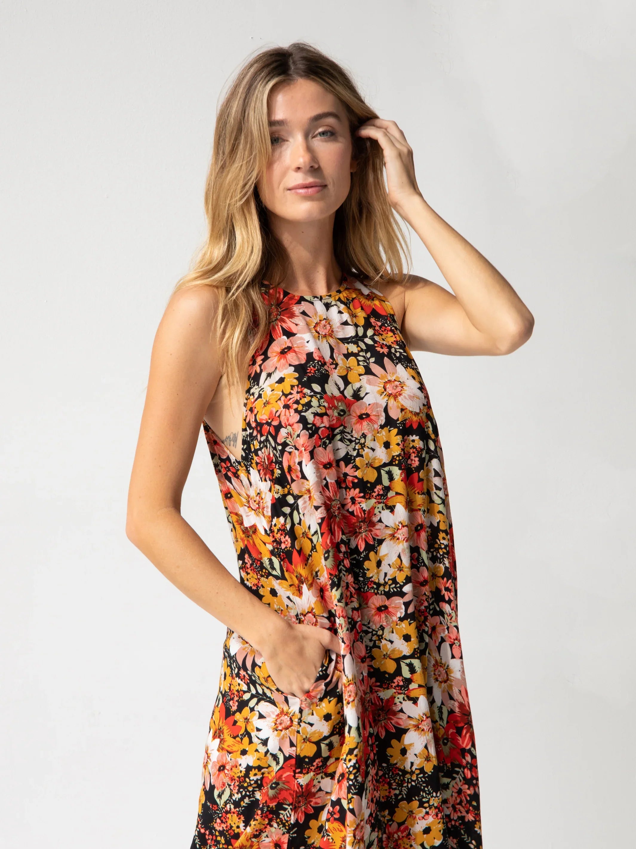 If you’ve ever wanted a dress that looks as great as it feels, you found it! The Katie Dress flatters the shoulders with its halter styling and fastens with a simple button at the back of the neck. This graceful floral maxi dress is semi-fitted up top but then gently flares to the ankle in smooth material that swirls around you. Wear it for a walk in the park, a date, or for everyday household chores and errands. Stow away your keys or boho bandeau in the pockets. For a cool evening, be sure to add your favorite jacket or sweater. Any shoe choice flawlessly pairs with this dress! Make your days and your wardrobe simpler by choosing this boho beauty.