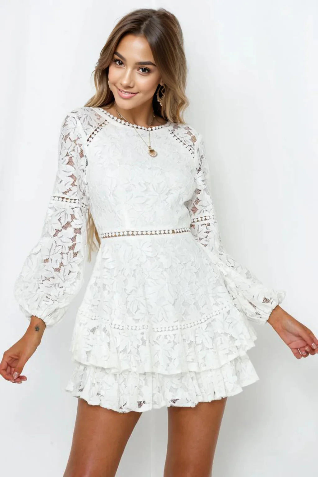 When it comes to a burst of femininity, there's nothing like a delicate lace dress edged with crochet trimming! Our Knew You Were Trouble Dress cements itself as an eye-turner with its exaggerated lantern sleeves, A-line silhouette and tiered ruffle hemline. We love styling ours with glittery hair clips.