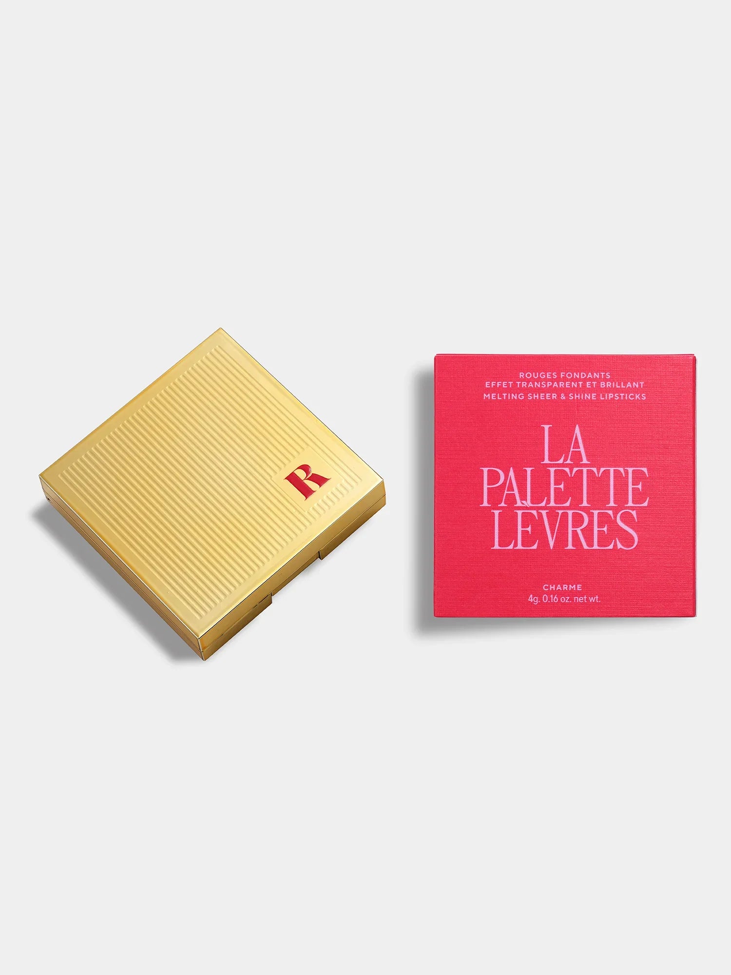 The Palette Charme is a fresh take on the iconic Lip Palette — now featuring a balmy, melting texture that seamlessly blends onto the lips for a sheer finish and natural sheen. Lighter than our traditional creamy formulas, it has a soft, weightless feel. Infused with Shea Butter, known for its nourishing and regenerating properties, and Vitamin E, recognized for its antioxidant benefits, it provides comfort and care with every application.