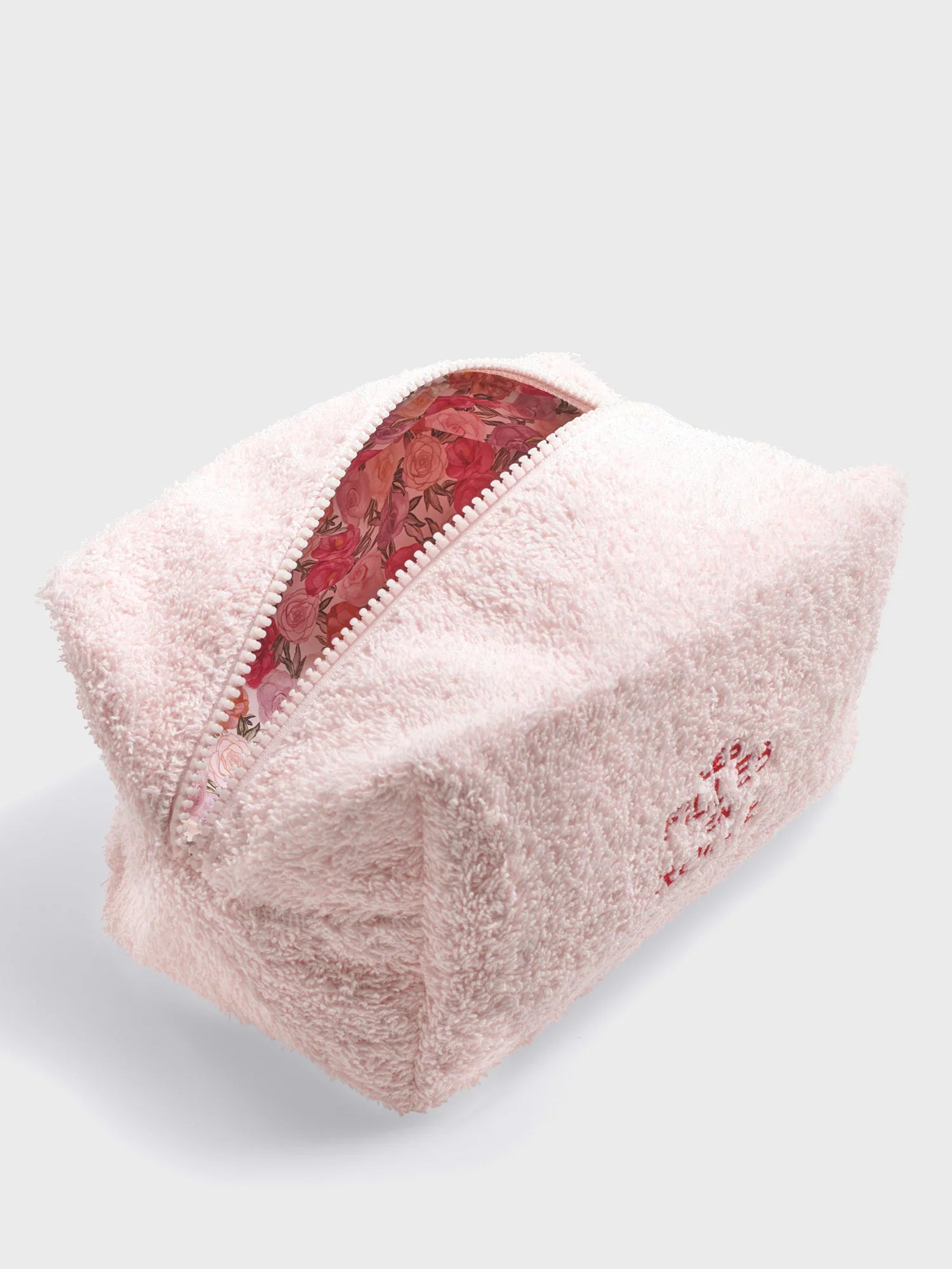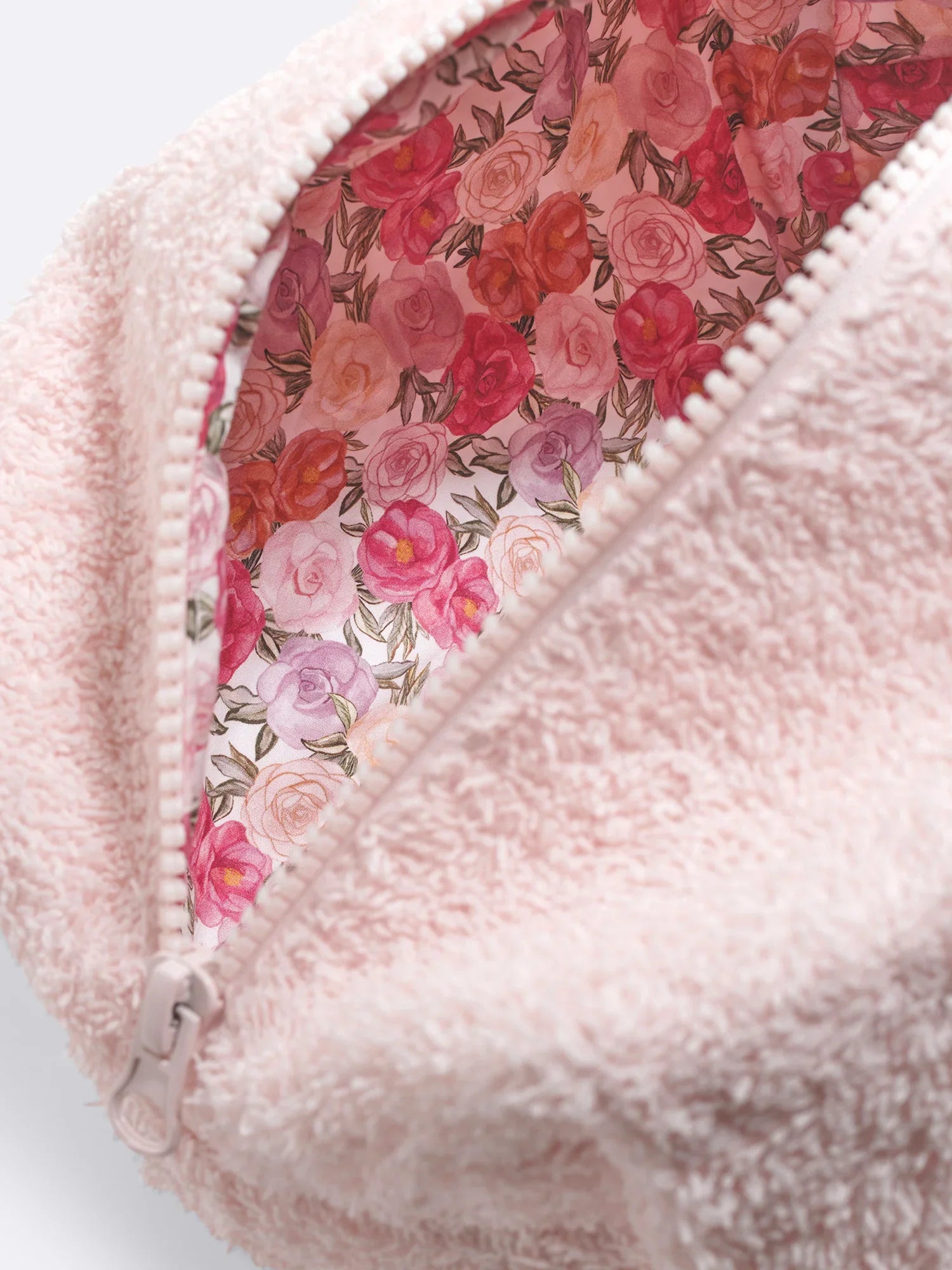 The cutest pink towel pouch with four different inside upcycled fabric which vary according to fabric availability. Easy to pack and bring everywhere with you your most favorite cosmetics.